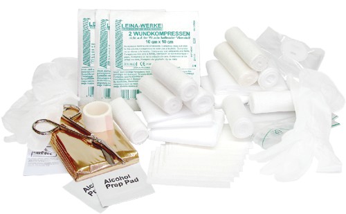 - skład apteczki (wg DIN 13164):