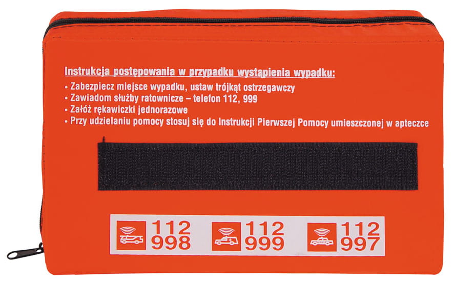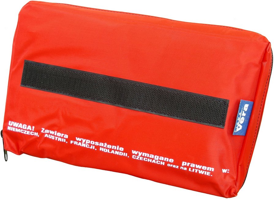 - apteczka samochodowa pierwszej pomocy w miękkim opakowaniu z tkaniny wodoodpornej