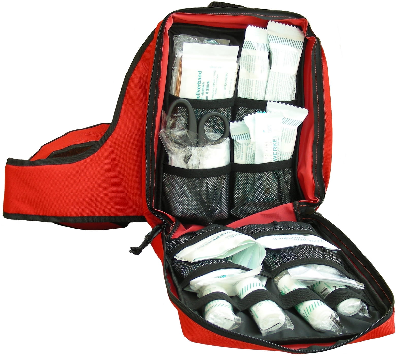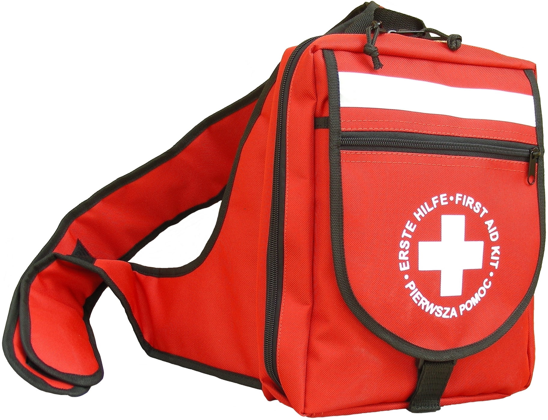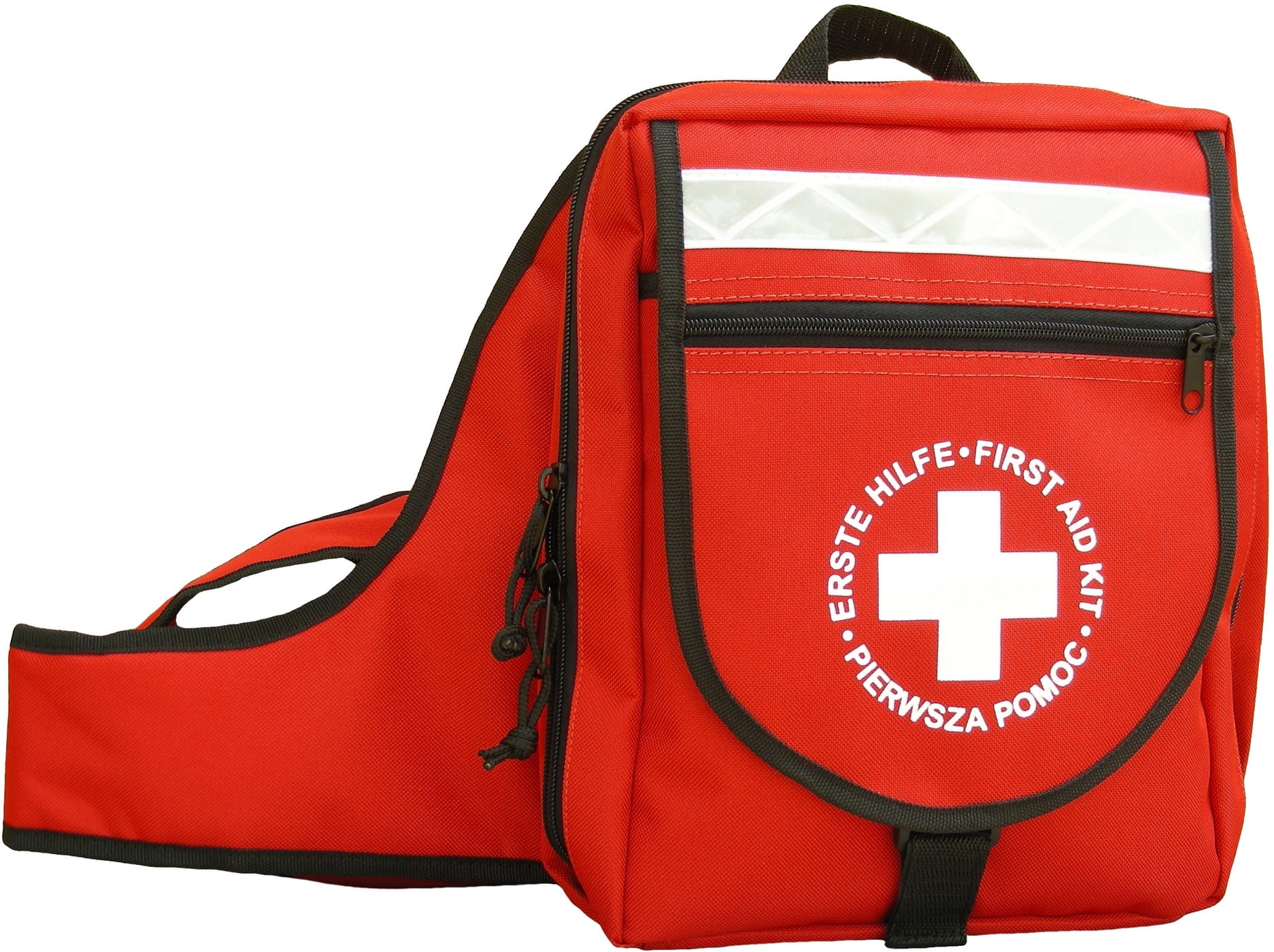 - apteczka w praktycznym plecaku wykonanym z tkaniny wodoodpornej