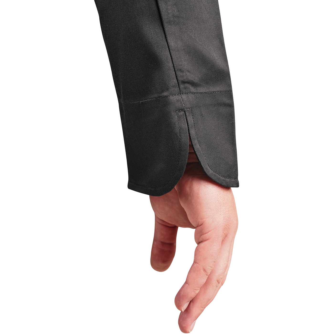 - długie rękawy zakończone mankietem zapewniają wygodę noszenia i lepsze dopasowanie podczas pracy z potrawami