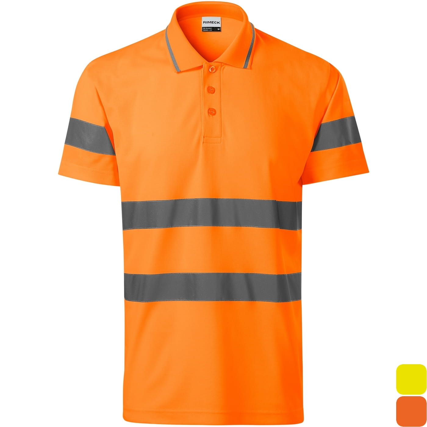 - koszulka polo unisex wykonana z materiału fluorescencyjnego