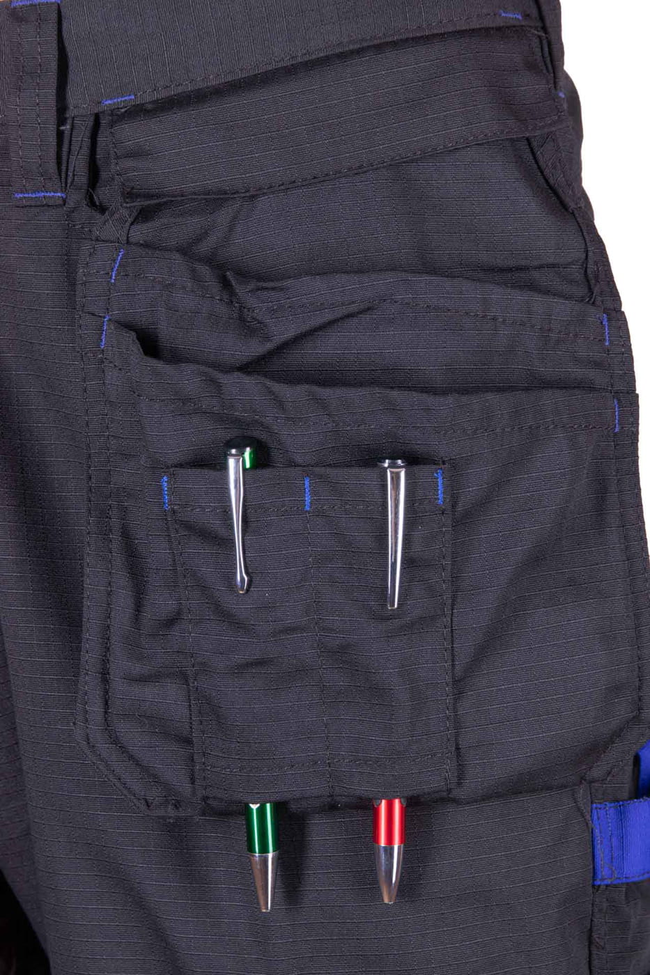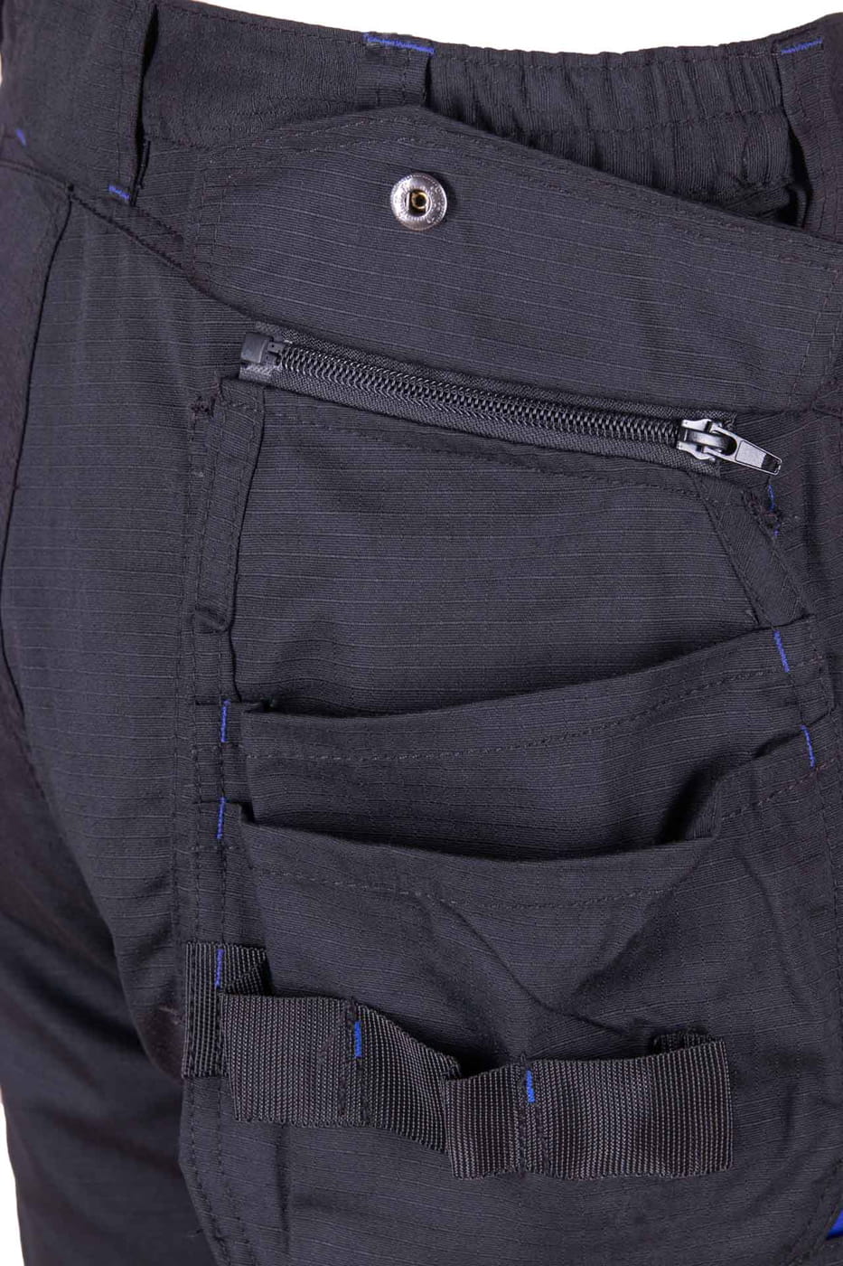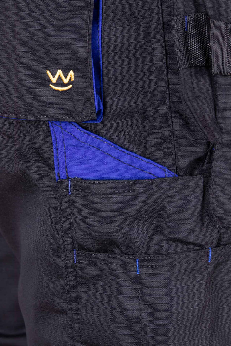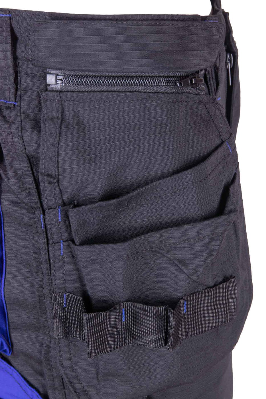 - kieszenie: dwie kieszenie w tylnej części spodni, dwie kieszenie boczne, wzmocnione kieszenie zapinane na rzepy, kieszeń na komórkę, kieszeń na miarkę „metrówkę”,ergonomiczna kieszeń na nakolanniki i dwie kieszenie monterskie dopinane na zamek