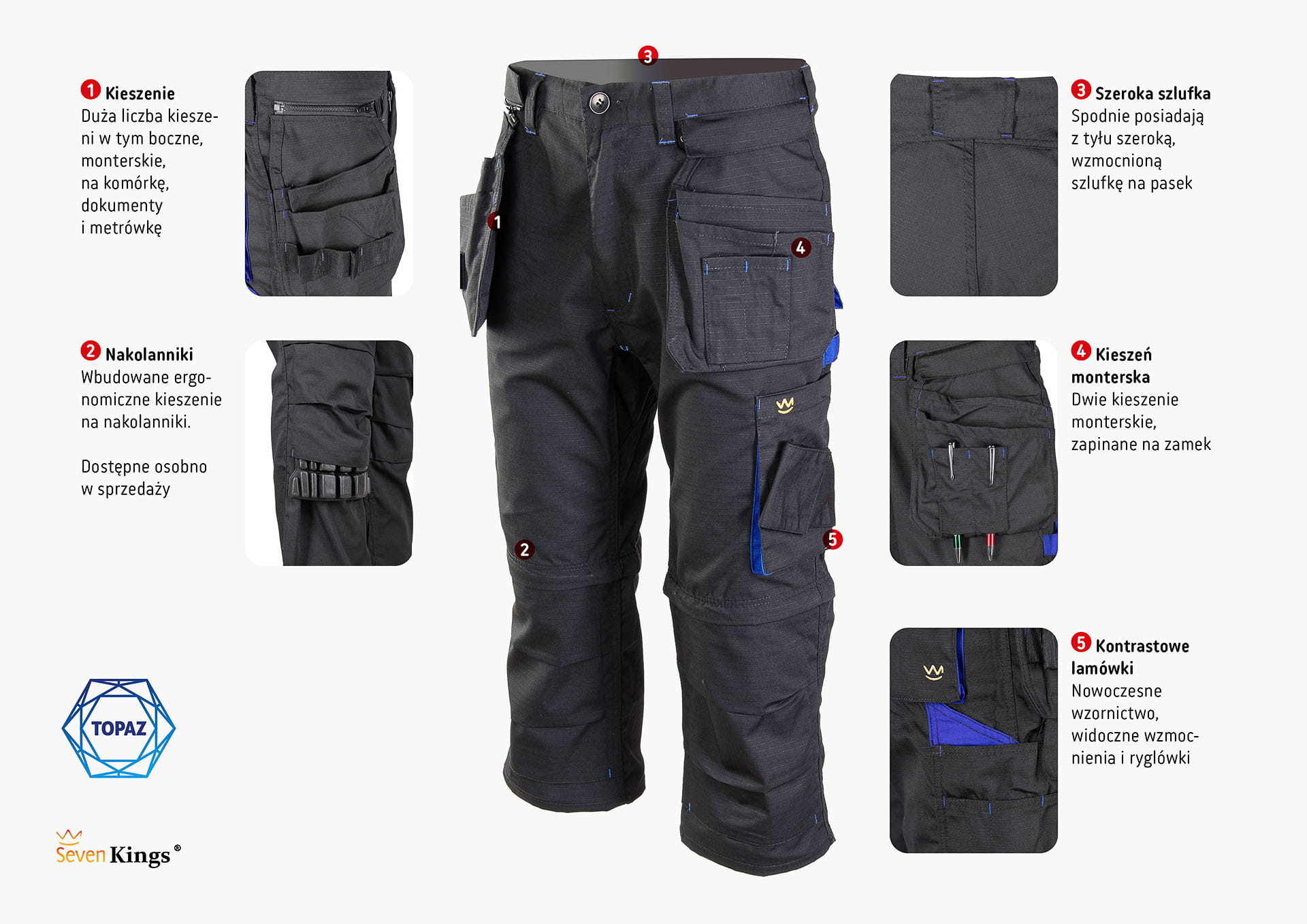 - krótkie spodenki robocze 3/4 Seven Kings z kolekcji odzieży Topaz