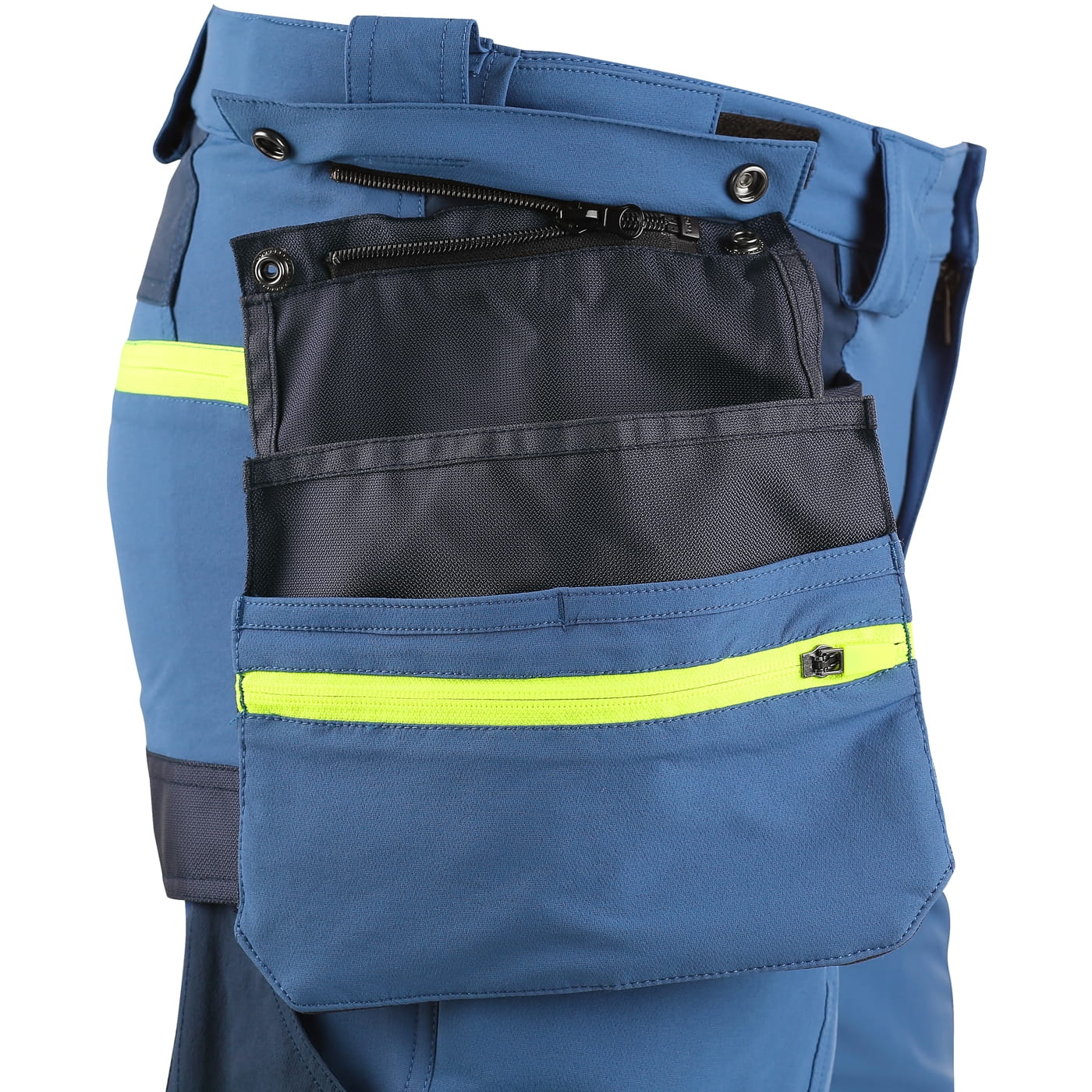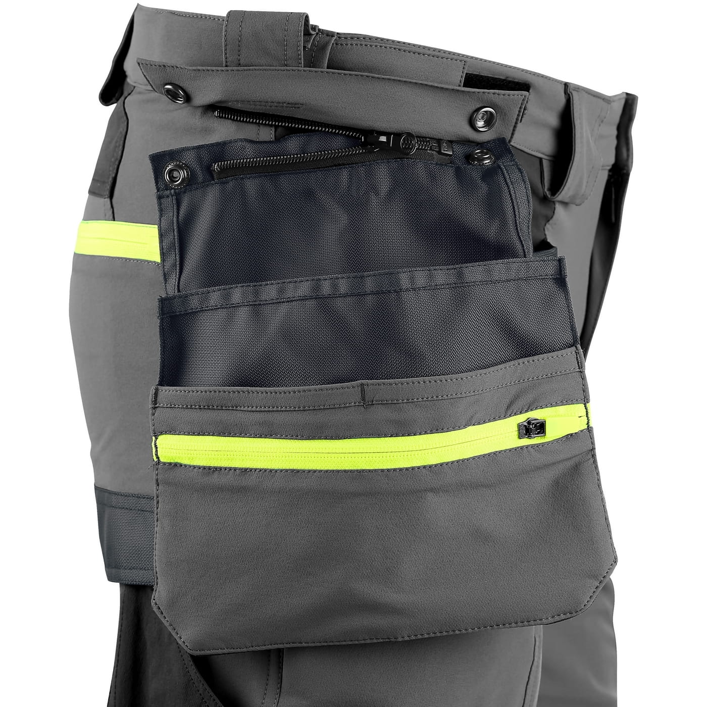 - dwie przednie kieszenie, dwie odpinane kieszenie na narzędzia wzmocnione materiałem CORDURA, kieszeń na zamek na udzie, wielofunkcyjna kieszeń boczna i dwie tylne kieszenie na dole wzmocnione materiałem CORDURA