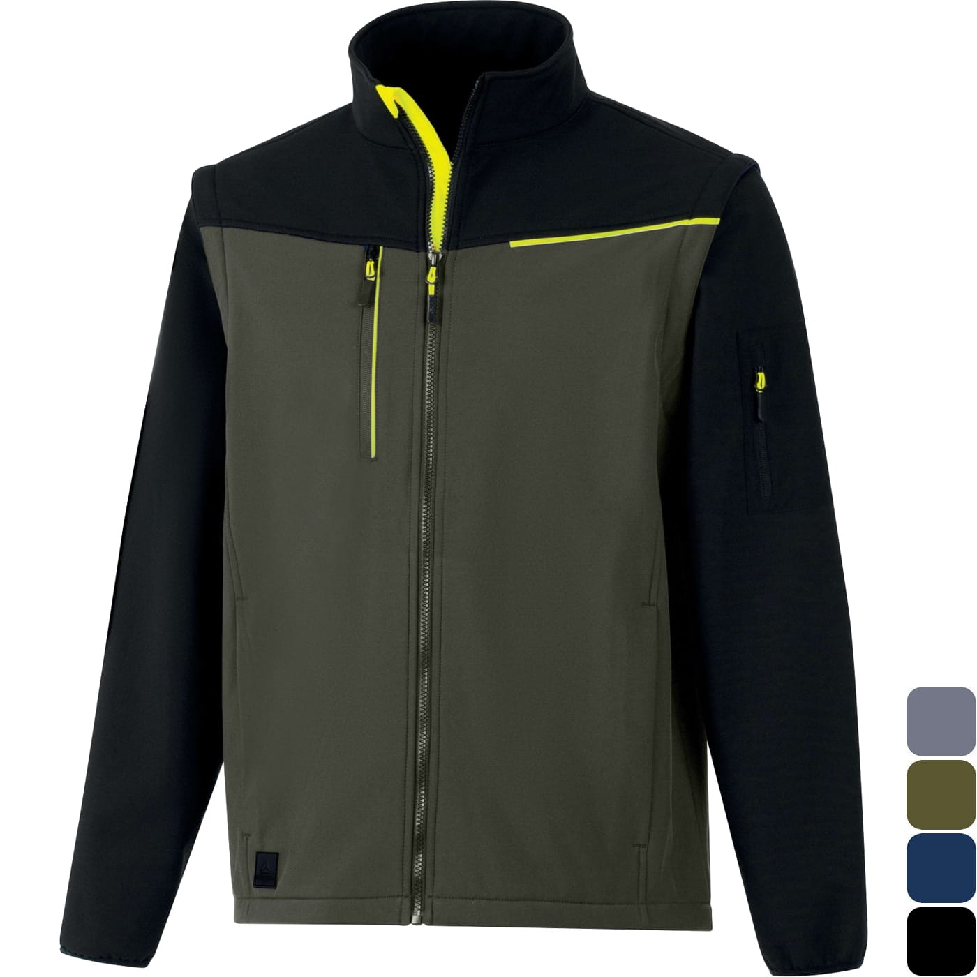 - materiał: wiatroodporna i nieprzemakalna tkanina softshell, 96% poliester / 4% elastan