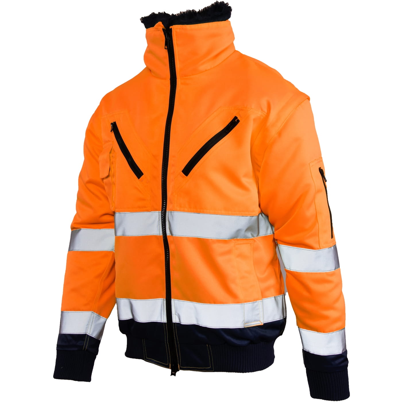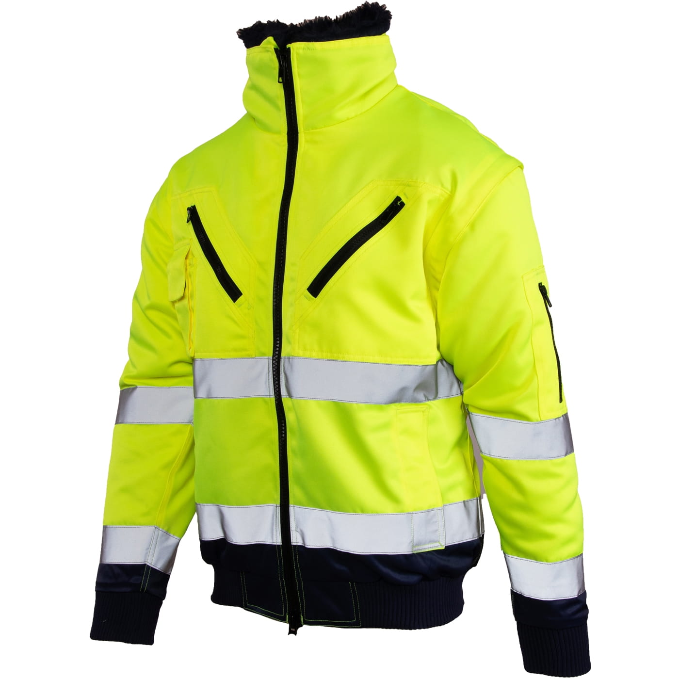 - kurtka ostrzegawcza ocieplana pilotka "3 w 1" z podwójnymi pasami odblaskowymi