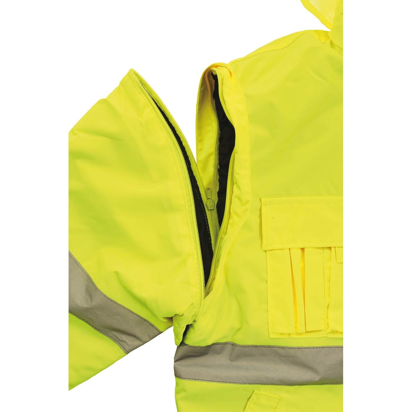 - dwa pasy odblaskowe na korpusie kurtki i dwa na rękawach