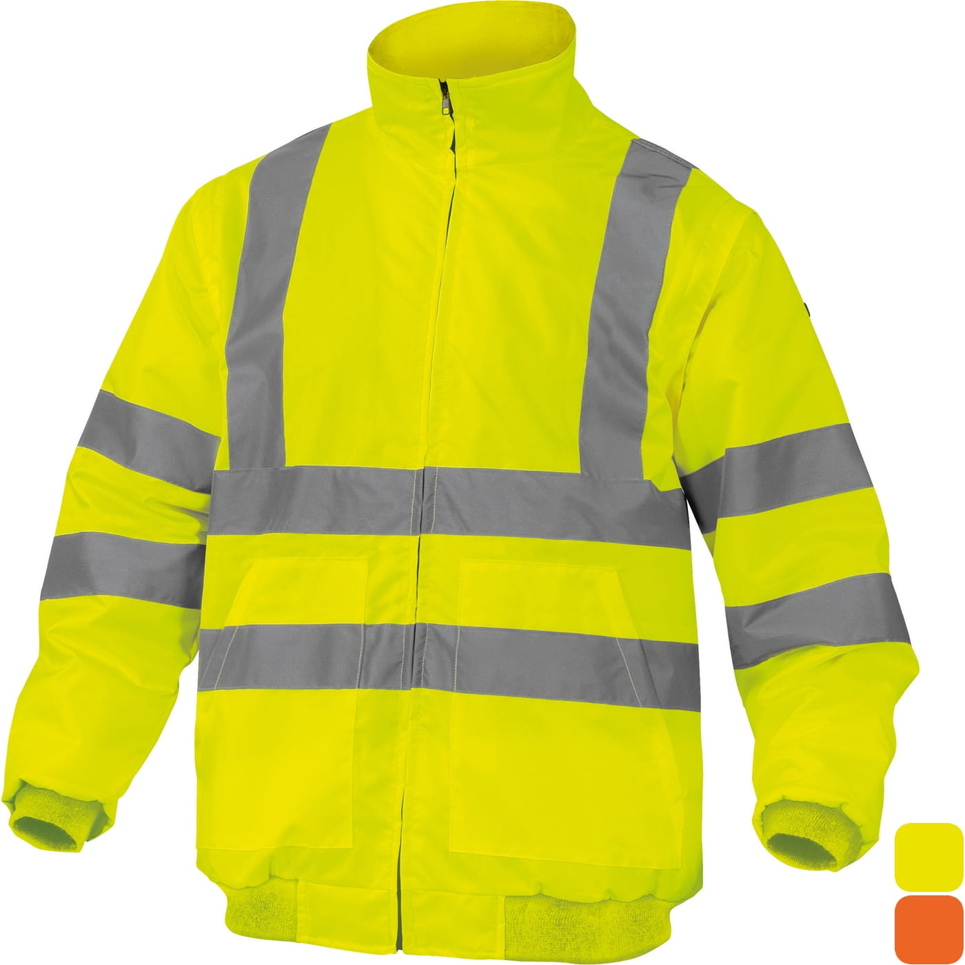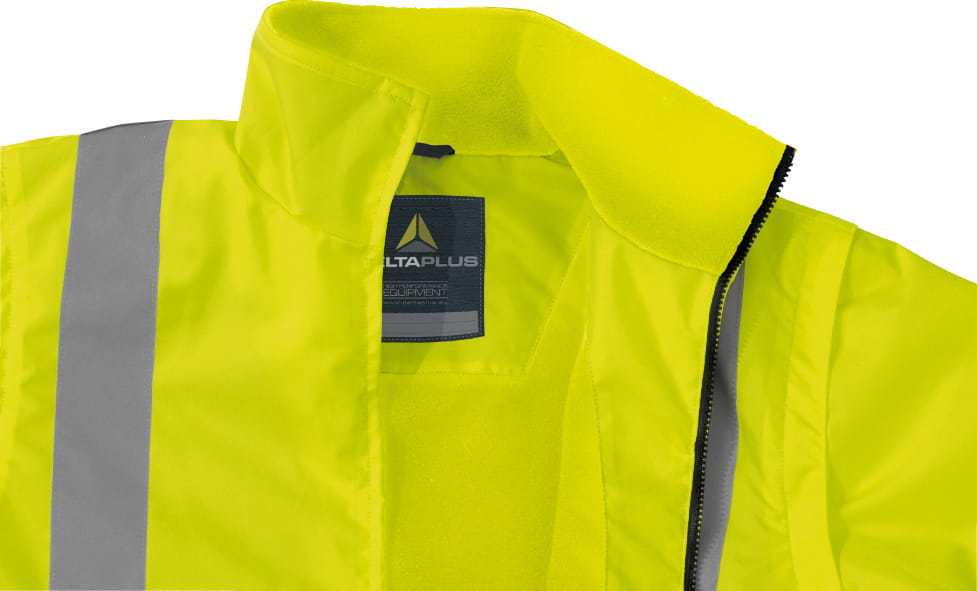 - wiatroszczelna i wodoodporna kurtka ostrzegawcza z odpinanymi rękawami