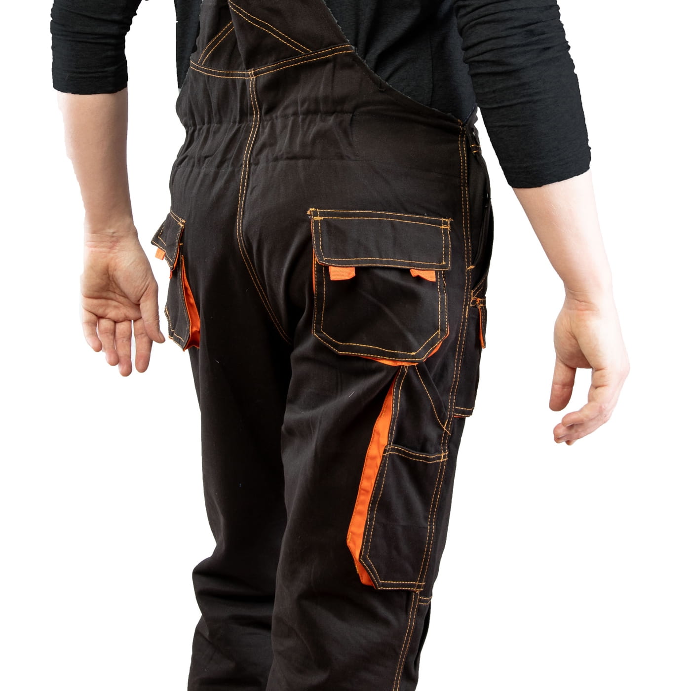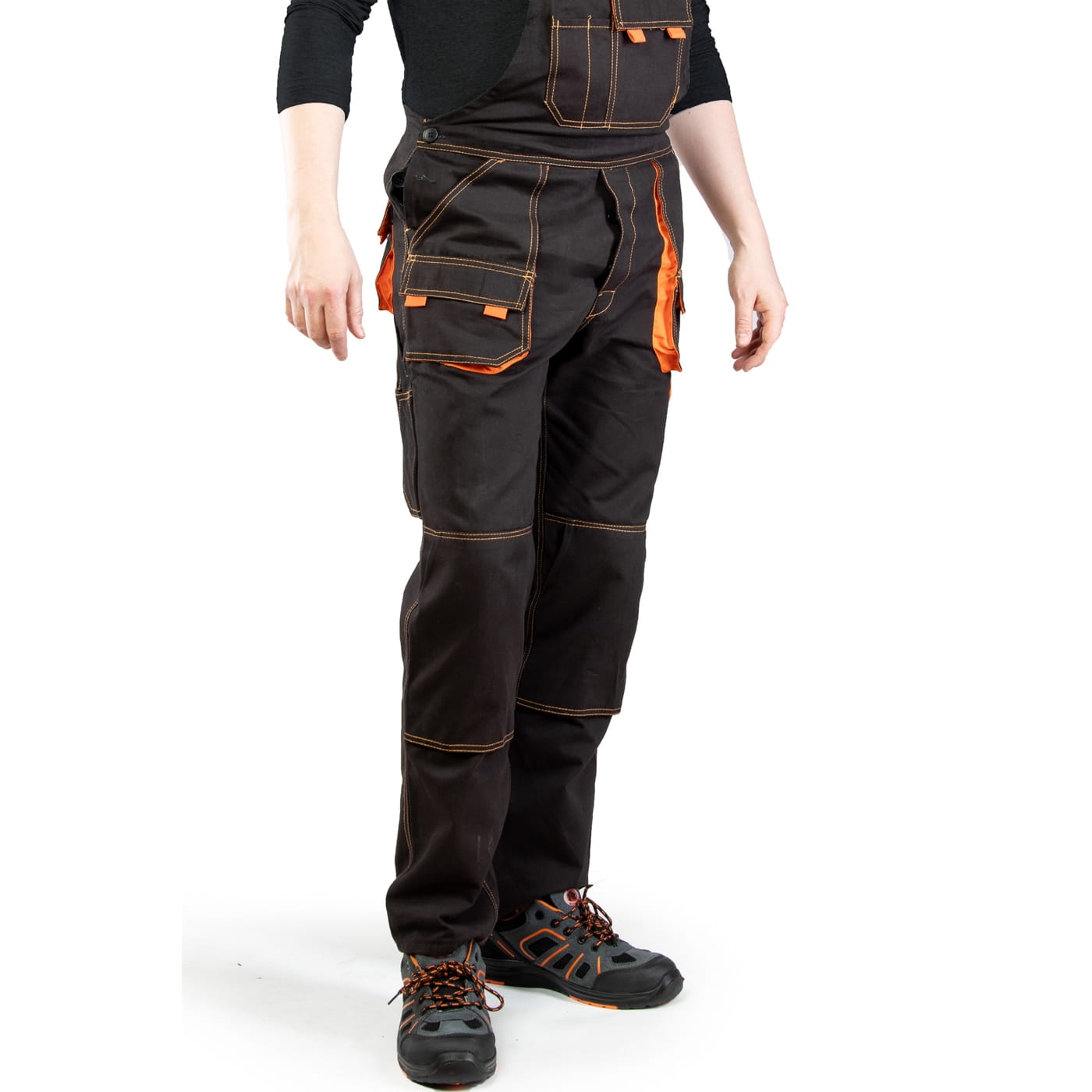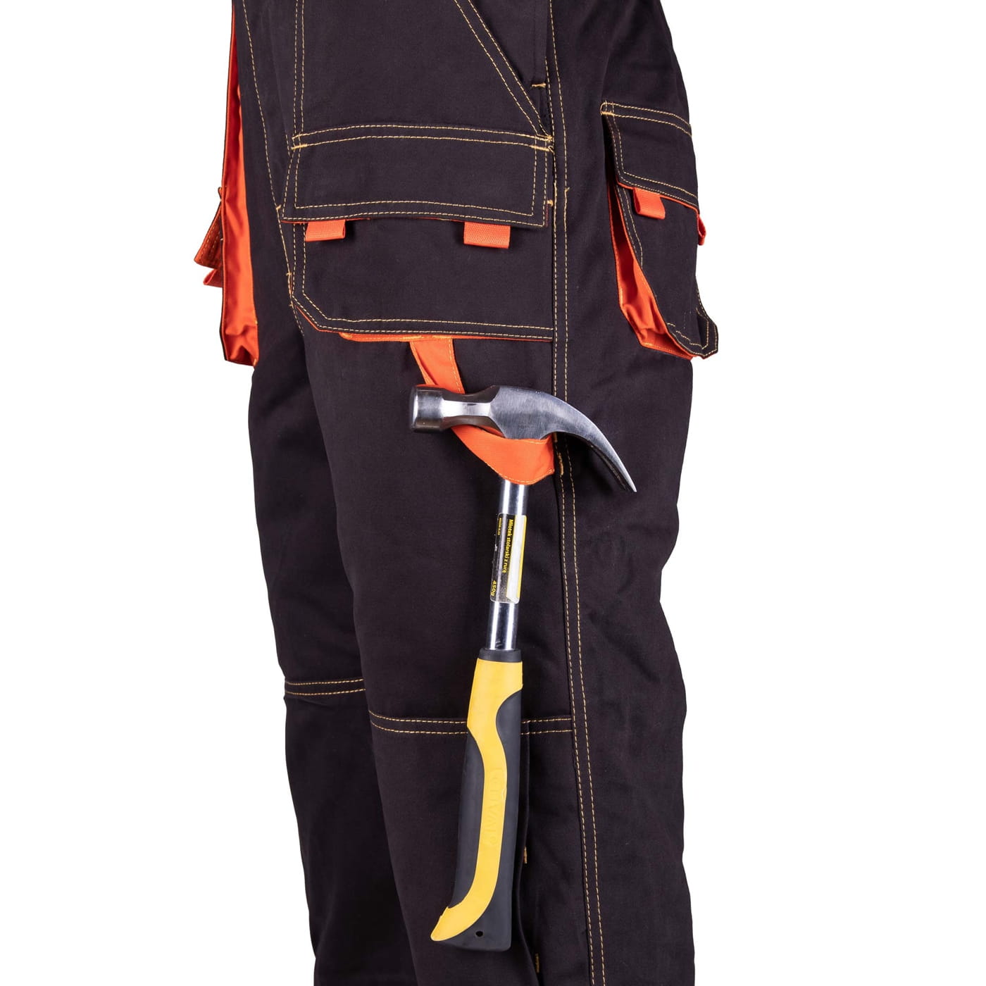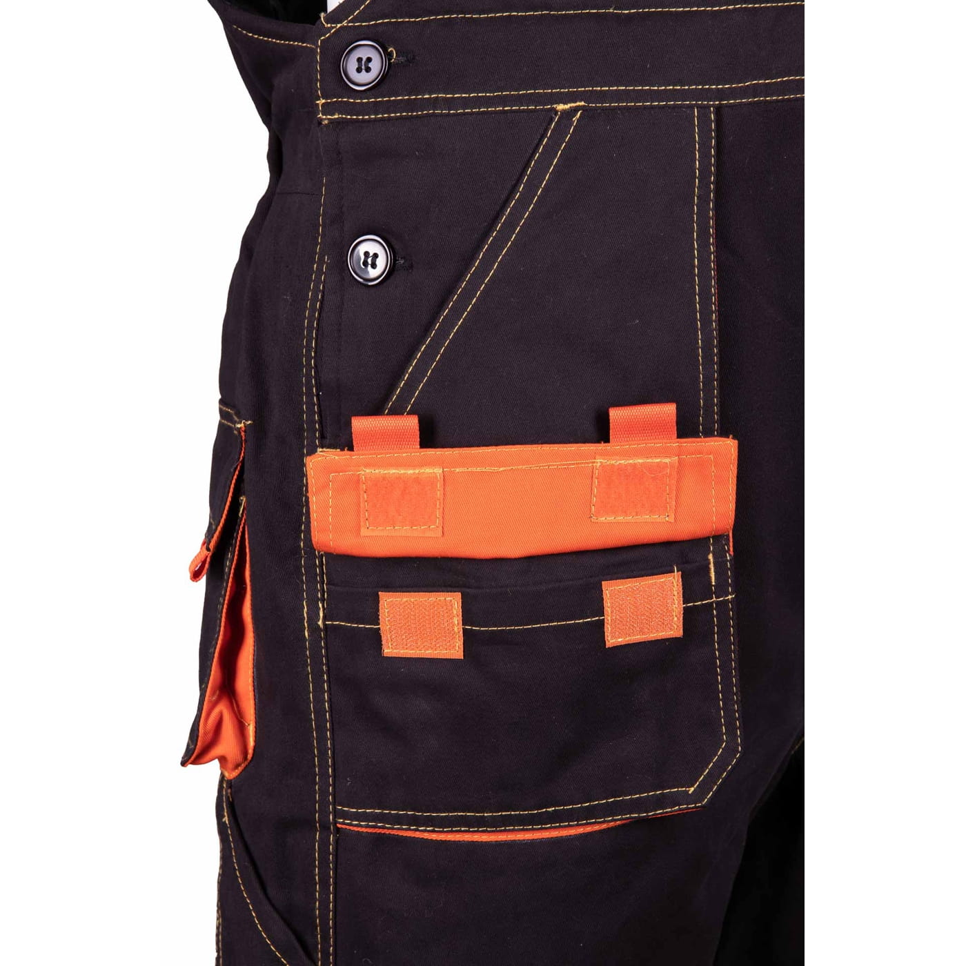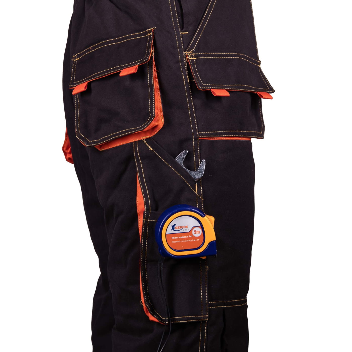 - kieszenie: przestrzenne kieszenie, dwie kieszenie boczne, wzmocnione kieszenie zapinane na rzepy, kieszeń na komórkę, dwie kieszonki na długopisy, kieszeń na dokumenty, kieszeń na miarkę i ergonomiczna kieszeń na nakolanniki