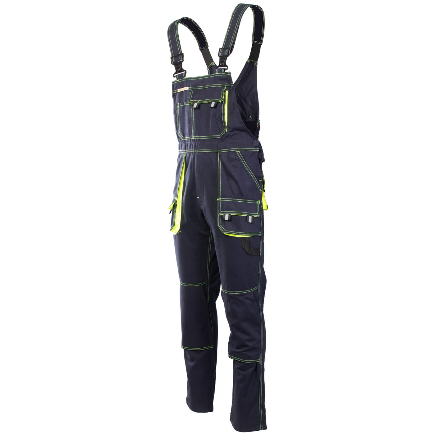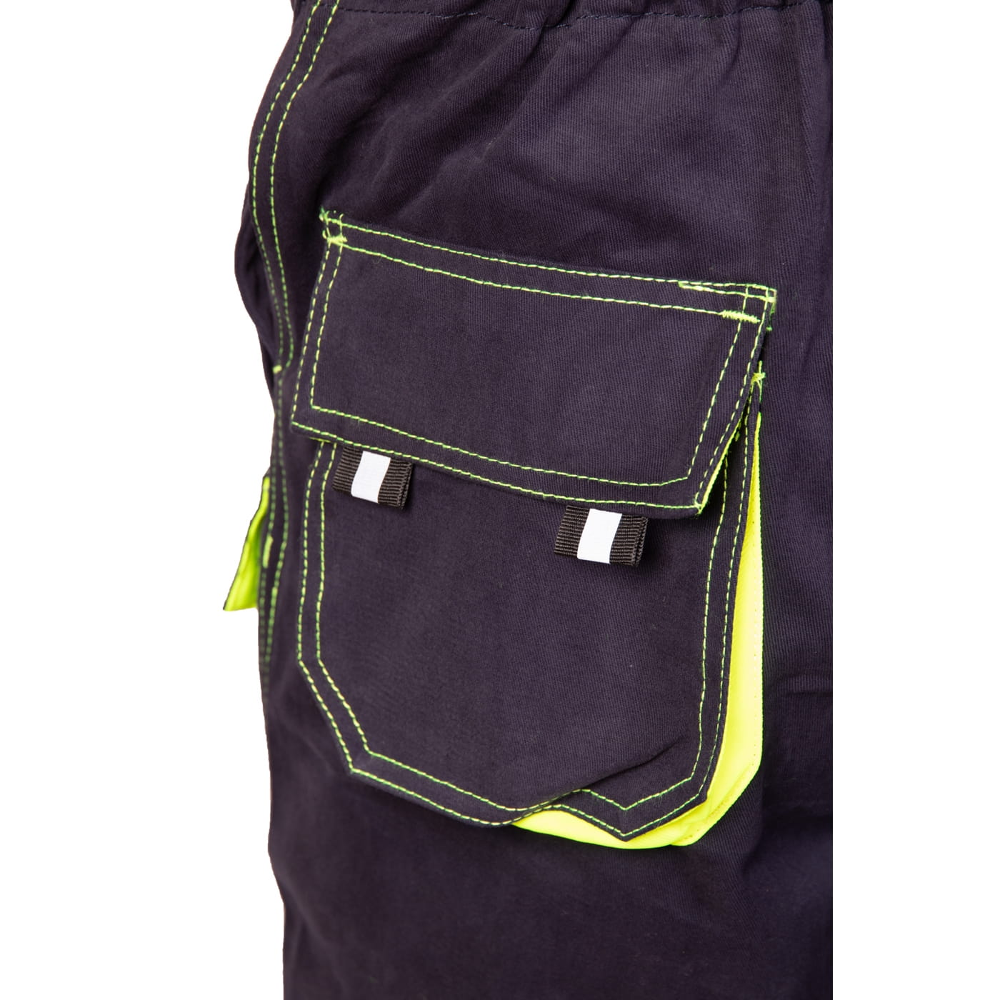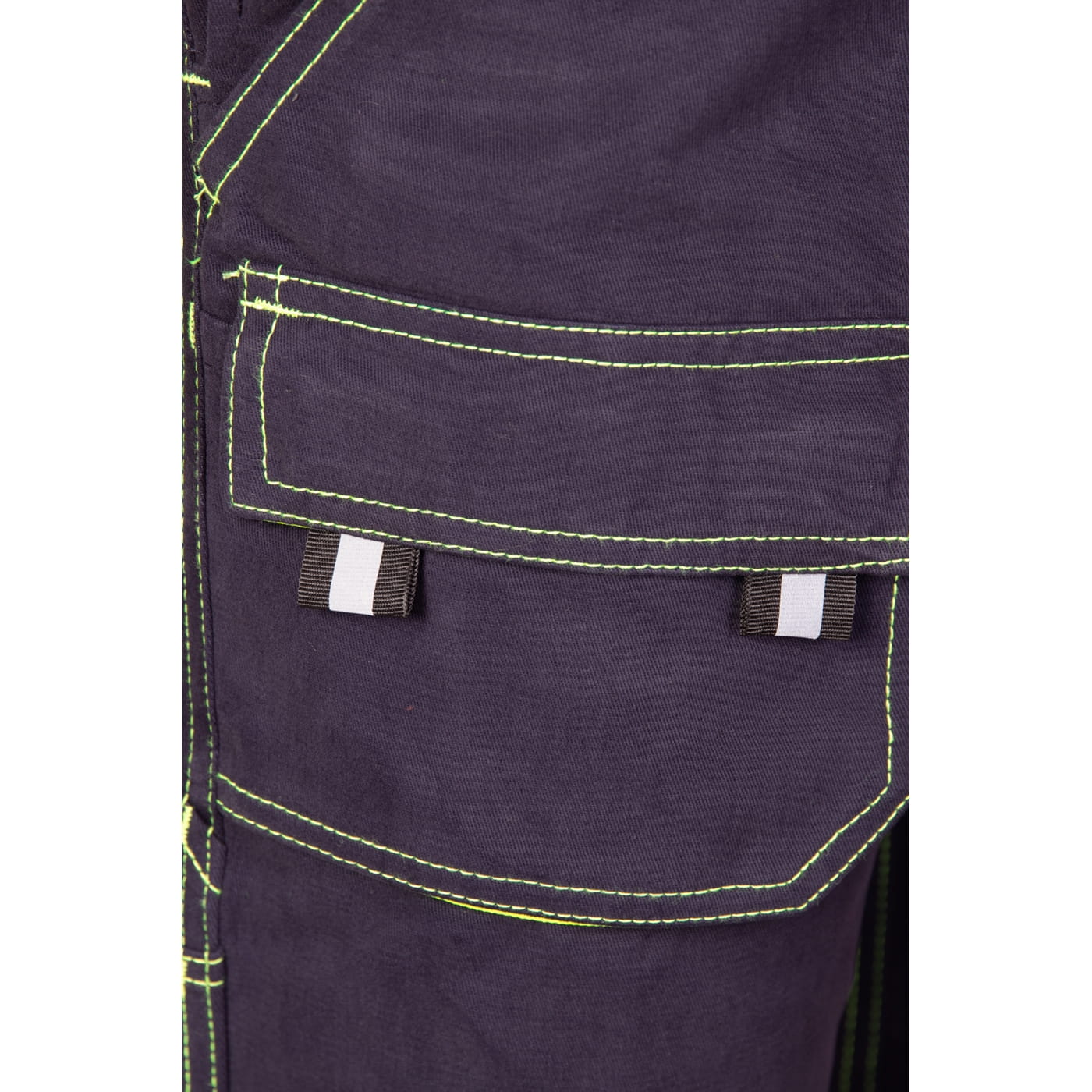 - kieszenie: przestrzenne kieszenie, dwie kieszenie boczne, wzmocnione kieszenie zapinane na rzepy, kieszeń na komórkę, dwie kieszonki na długopisy, kieszeń na dokumenty, kieszeń na miarkę i ergonomiczna kieszeń na nakolanniki