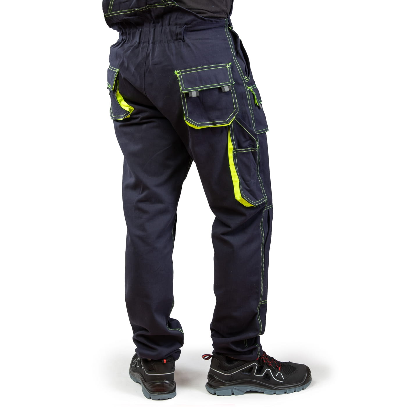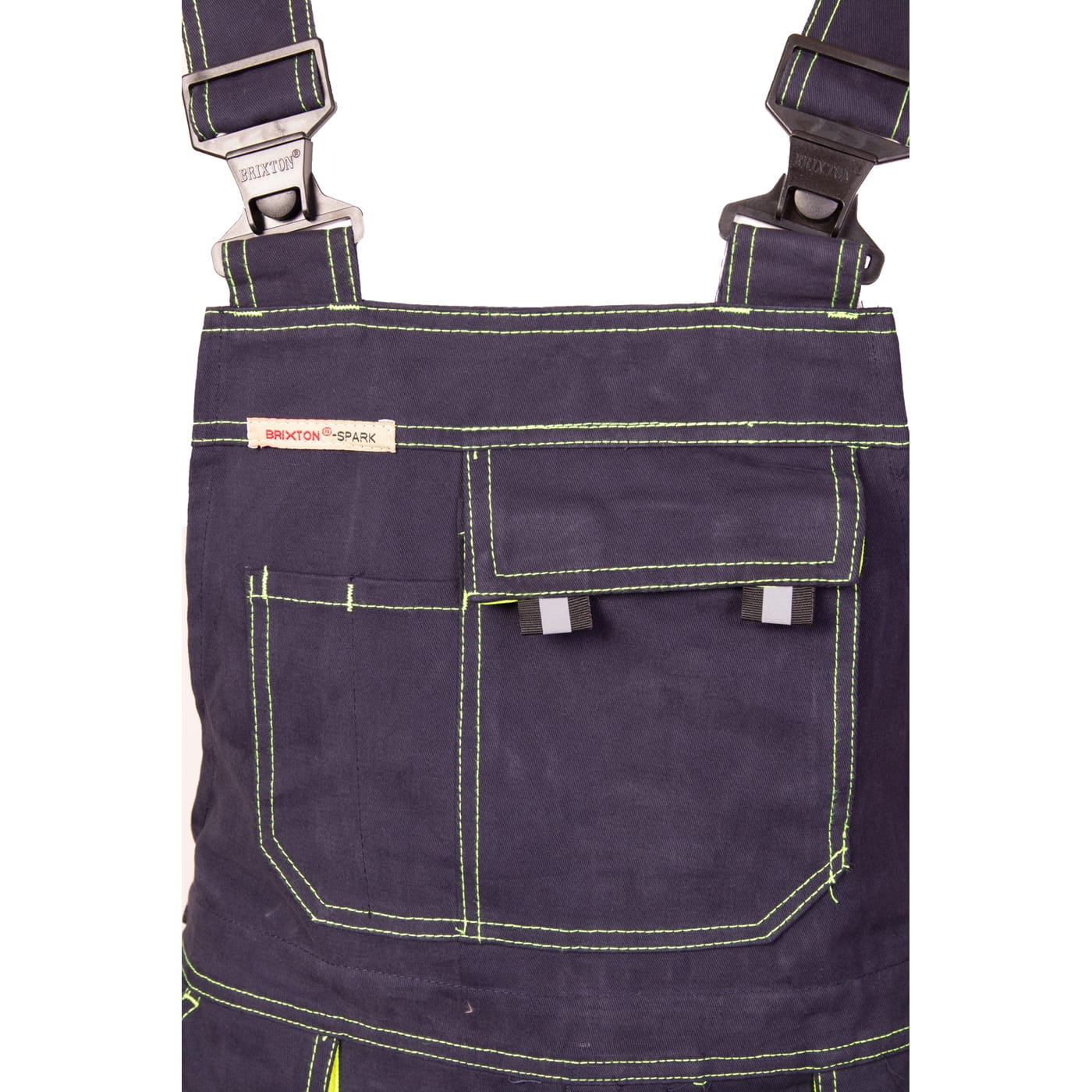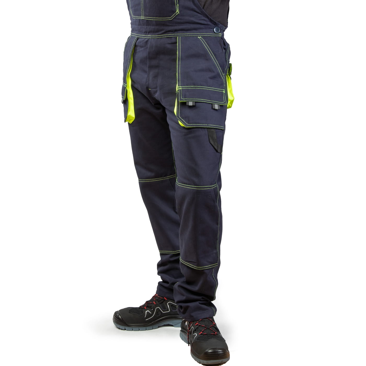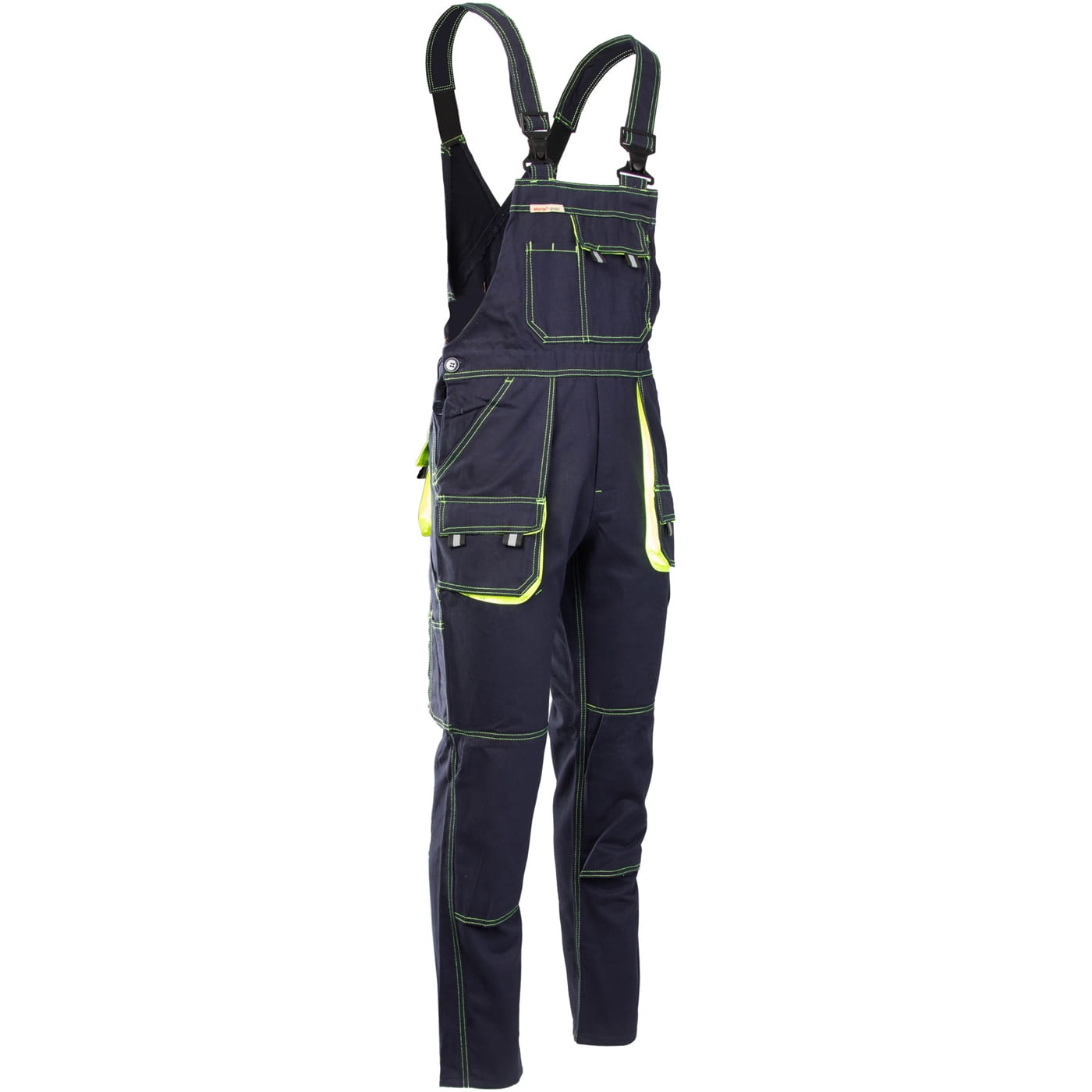 - kieszenie: przestrzenne kieszenie, dwie kieszenie boczne, wzmocnione kieszenie zapinane na rzepy, kieszeń na komórkę, dwie kieszonki na długopisy, kieszeń na dokumenty, kieszeń na miarkę i ergonomiczna kieszeń na nakolanniki