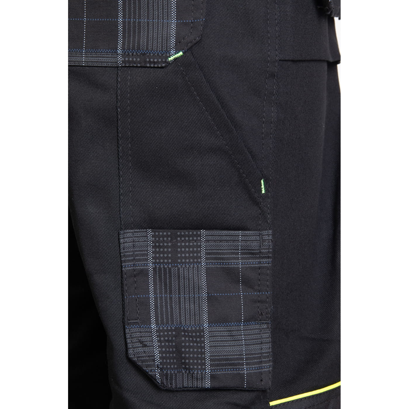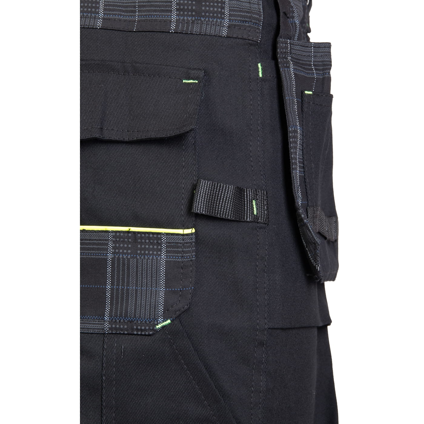 - kieszenie: dwie kieszenie w tylnej części spodni, wzmocnione kieszenie boczne, wzmocnione kieszenie zapinane na rzepy, dwie kieszonki na długopisy, kieszeń na dokumenty, kieszeń na miarkę „metrówkę”, dwie chowane kieszenie monterskie oraz ergonomiczna kieszeń na nakolanniki wykonana z Cordury