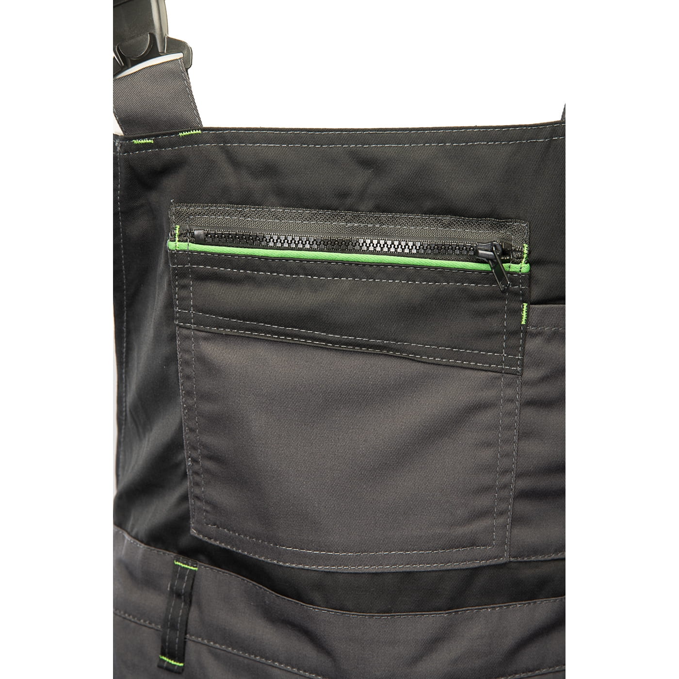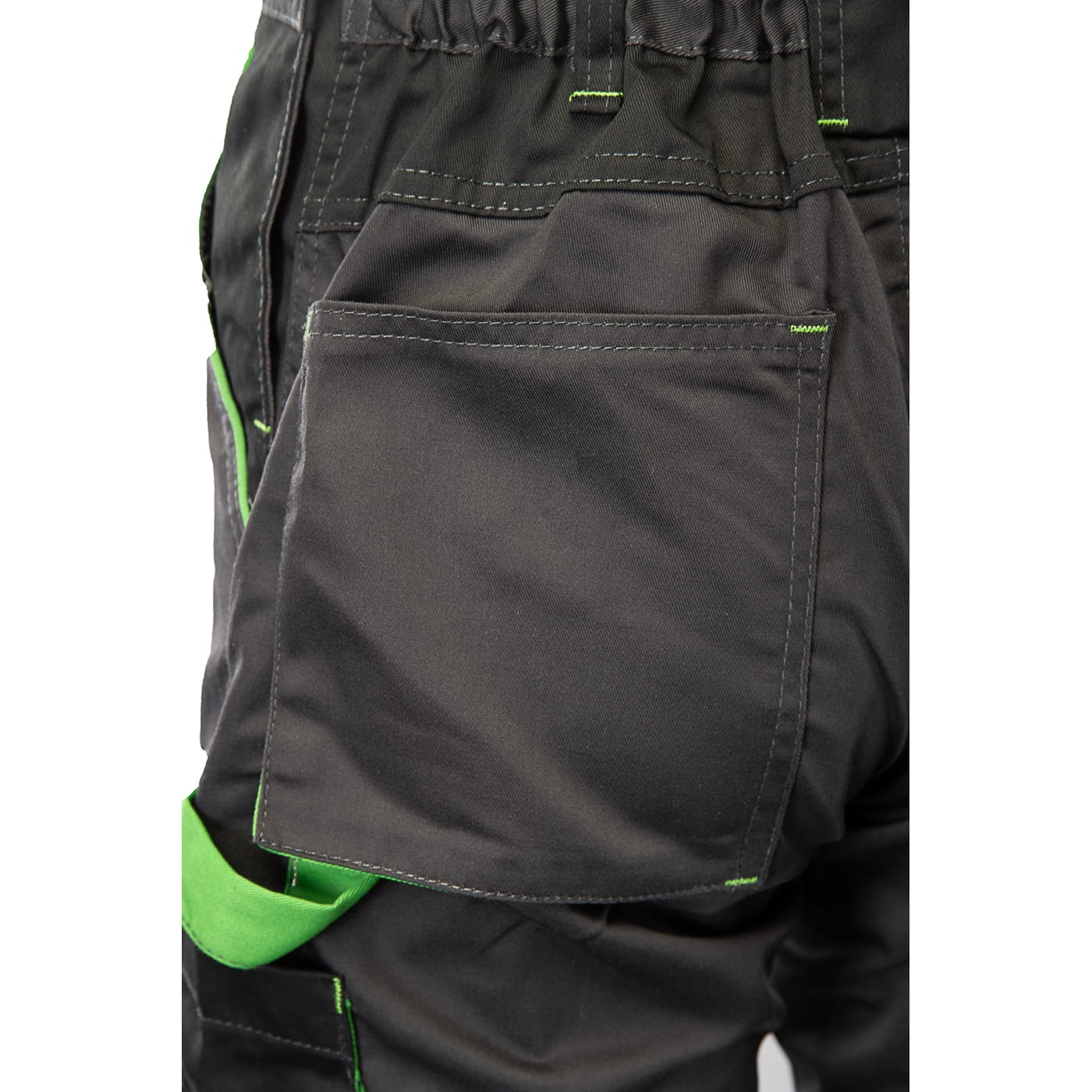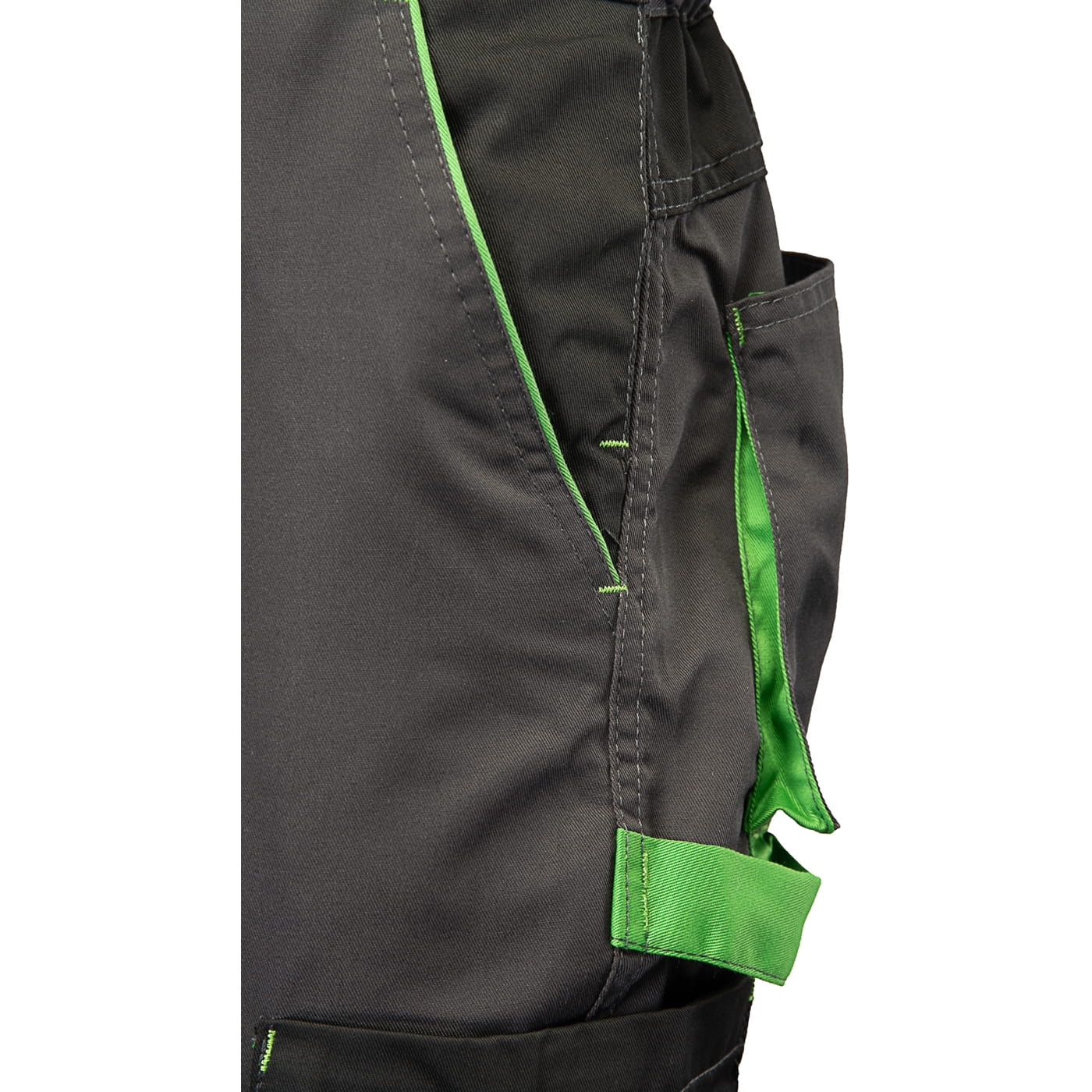 - kieszenie: dwie kieszenie w tylnej części spodni, dwie wzmocnione kieszenie boczne, kieszeń na komórkę, kieszeń na dokumenty, dwie kieszonki na długopisy, kieszeń na miarkę „metrówkę” i ergonomiczna kieszeń na nakolanniki