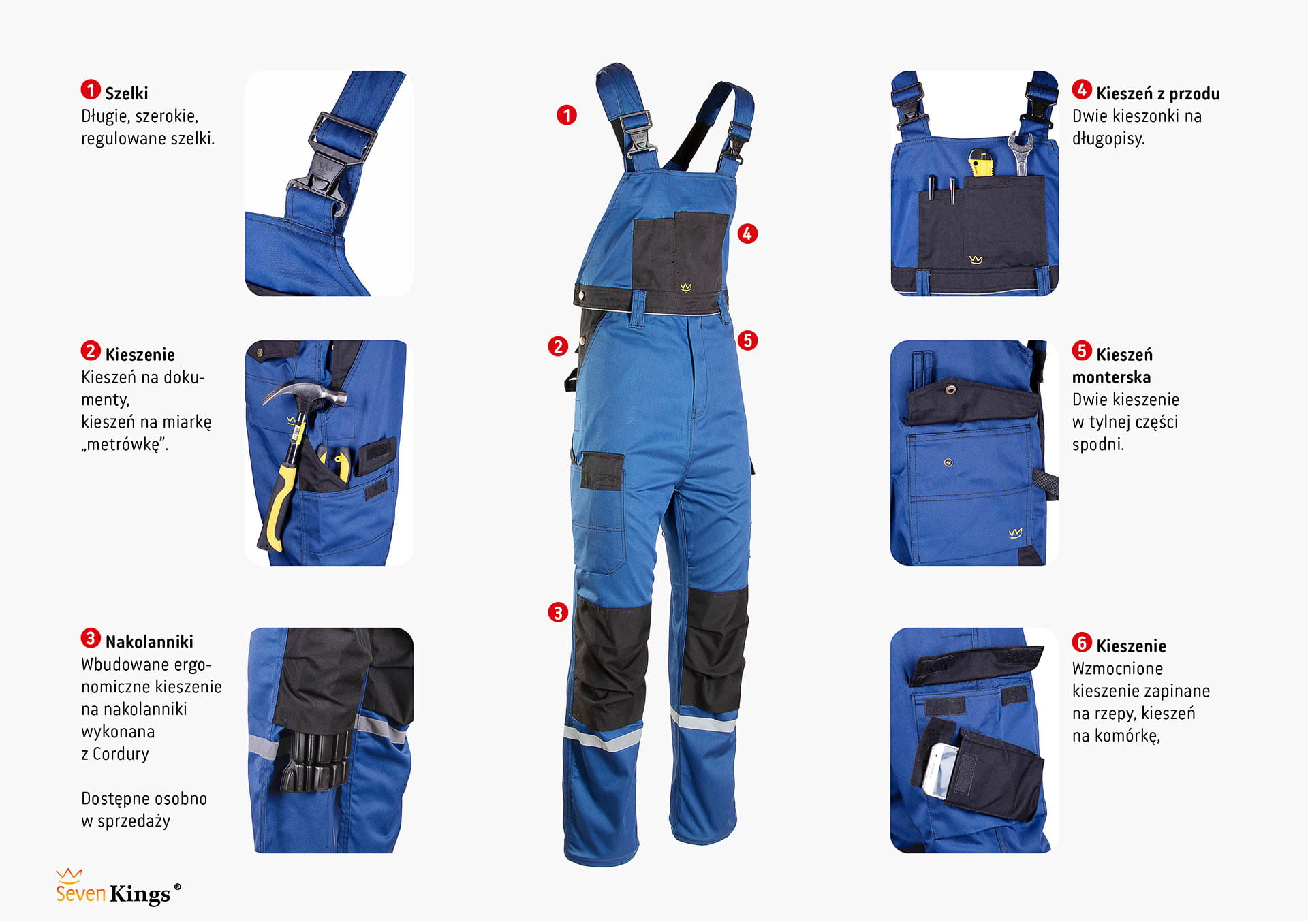 - spodnie ogrodniczki Seven Kings z kolekcji odzieży Saphir