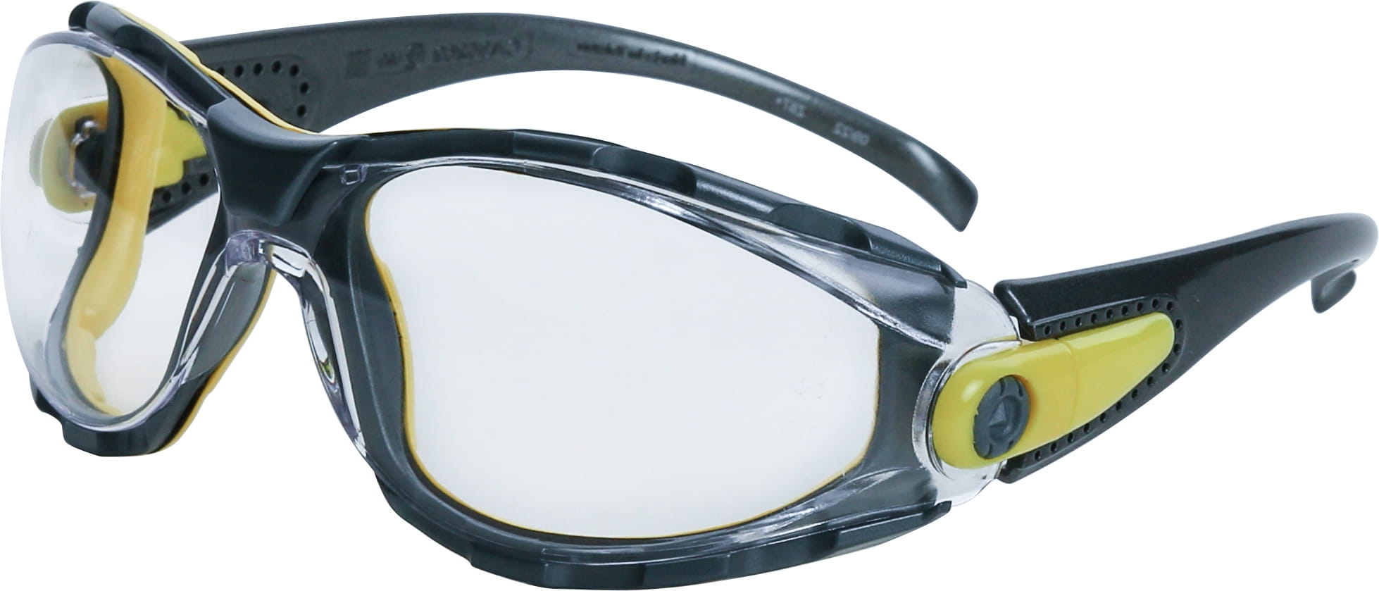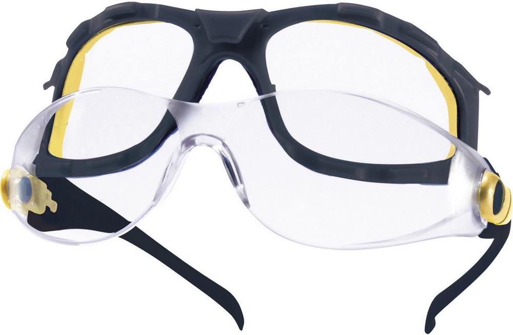 - jednoczęściowe, bezbarwne okulary wykonane z poliwęglanu
