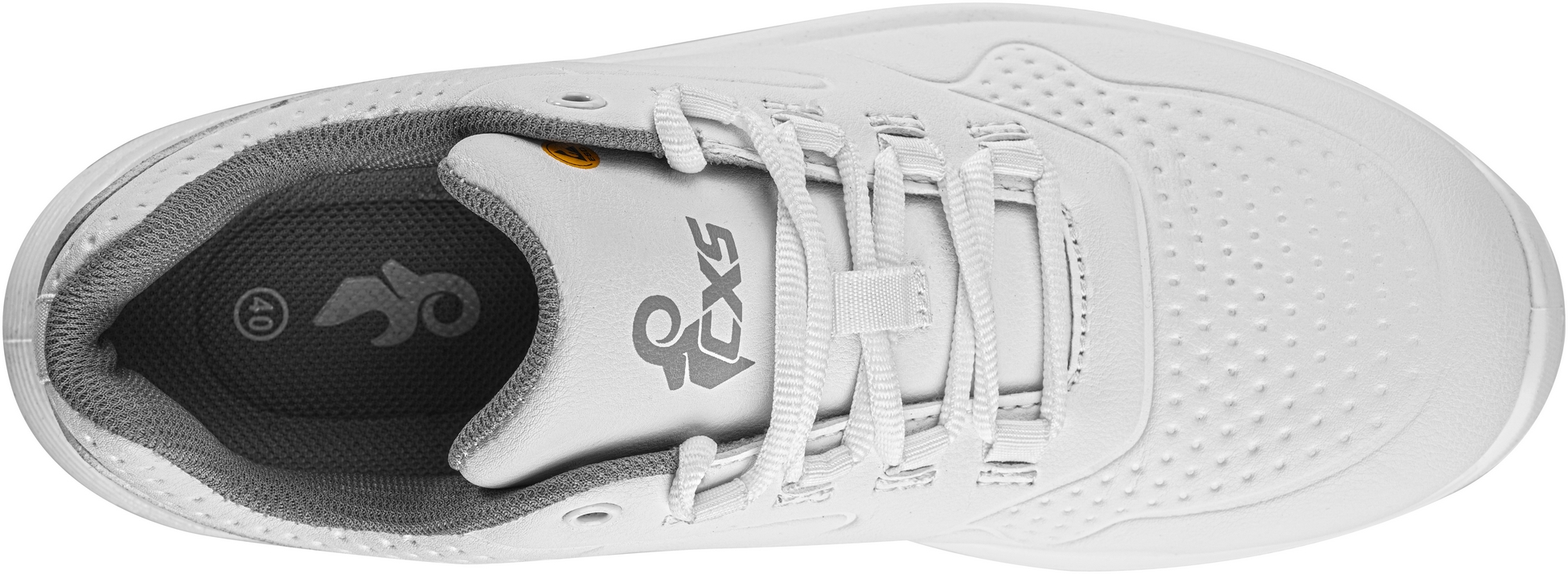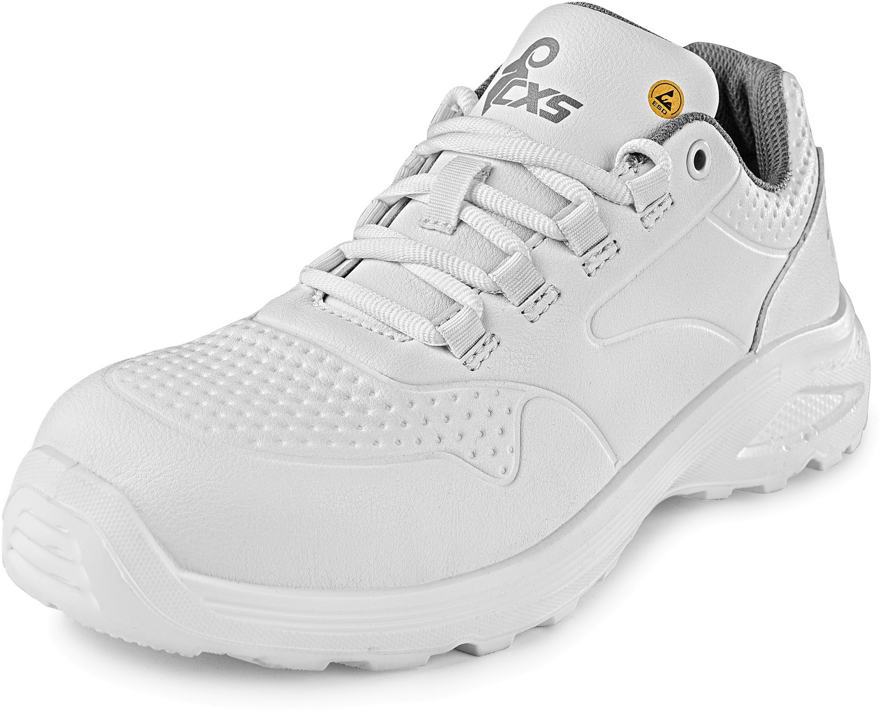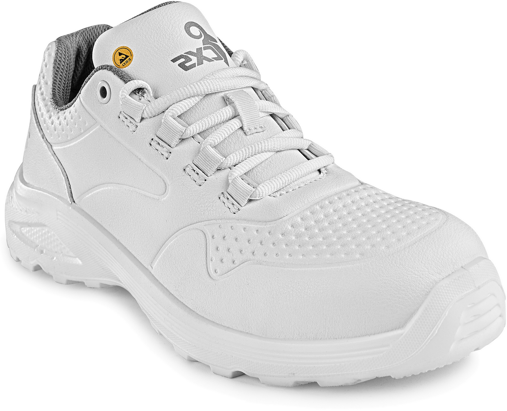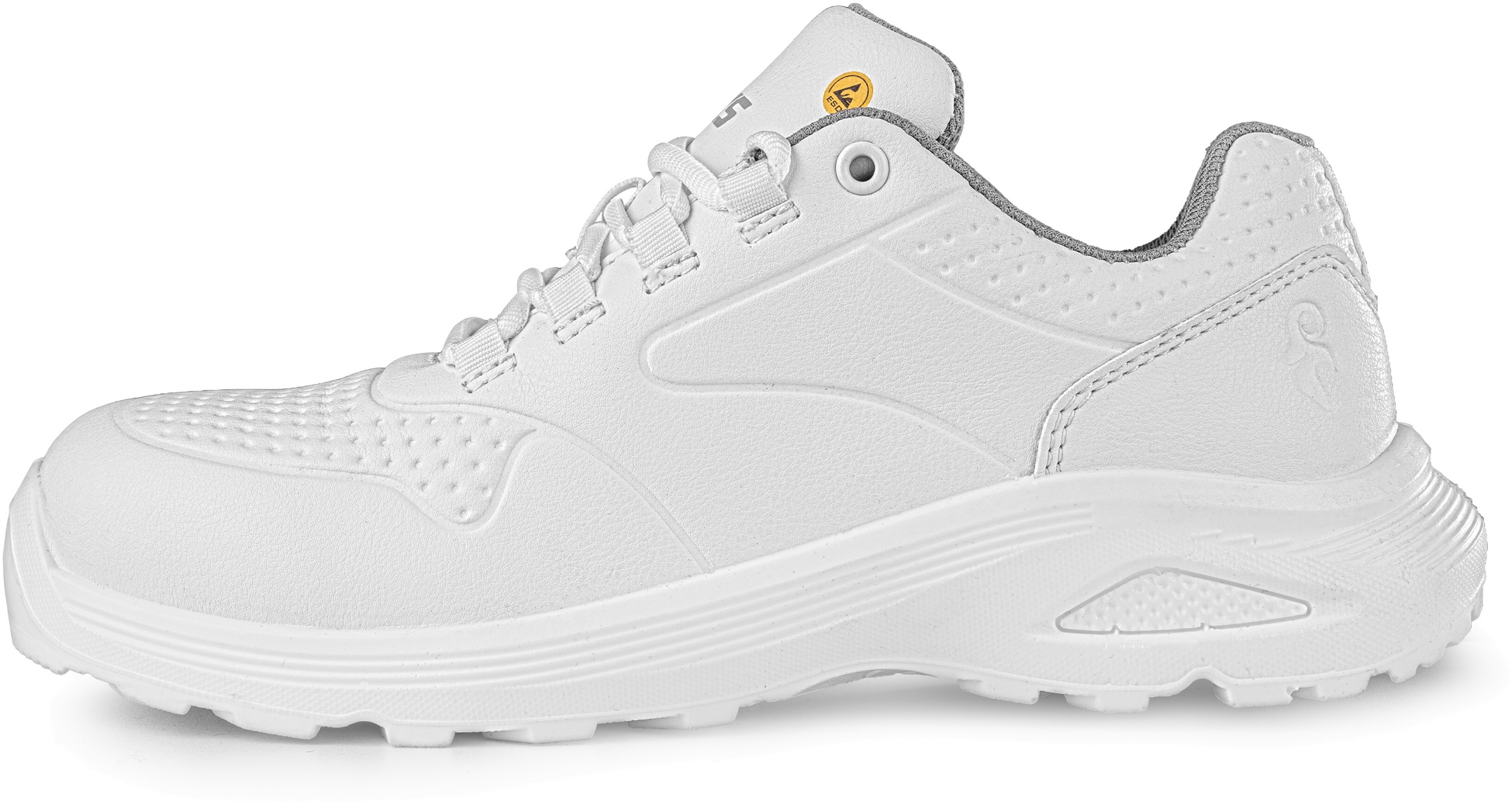 - białe półbuty robocze z właściwościami ESD i antybakteryjną powłoką Sanitized