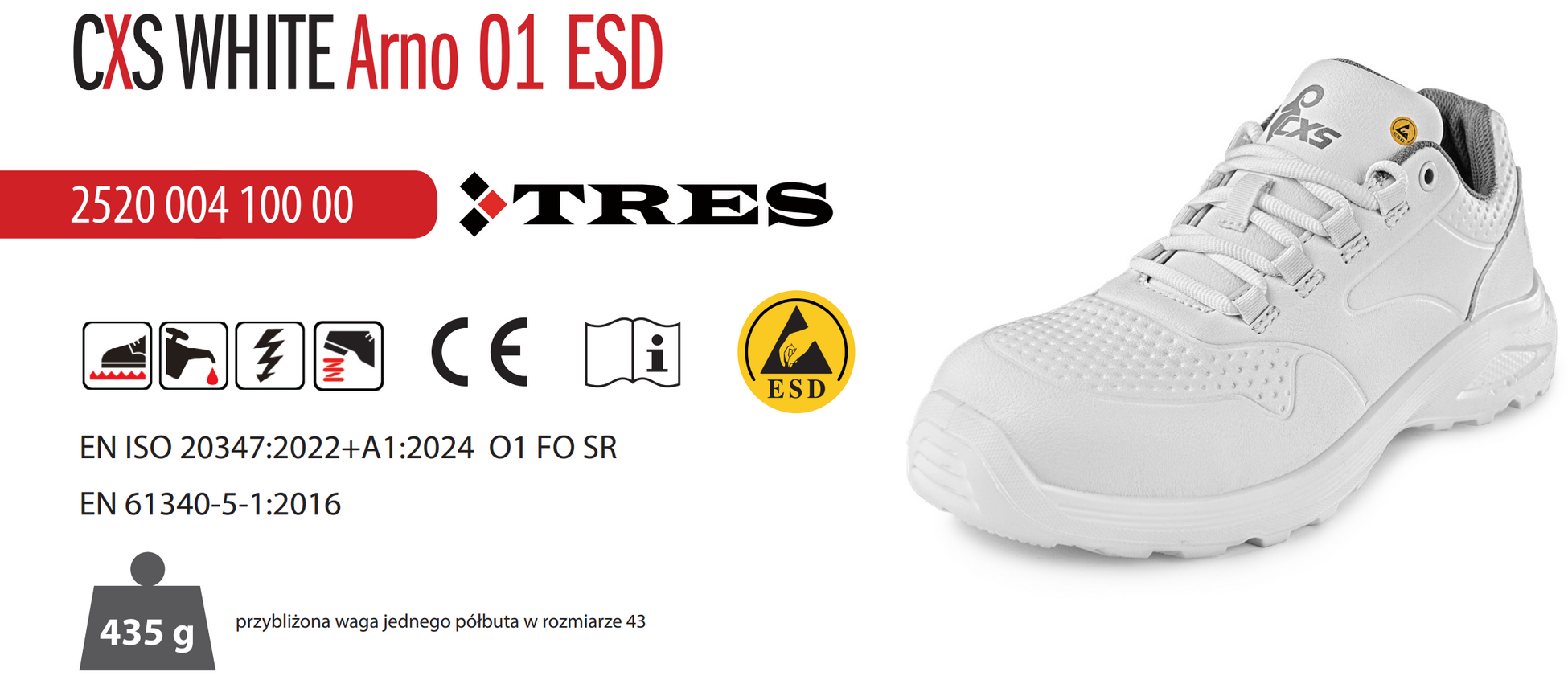 - normy: EN ISO 20347:2022+A1:2024 O1 FO SR; EN 61340-5-1:2016