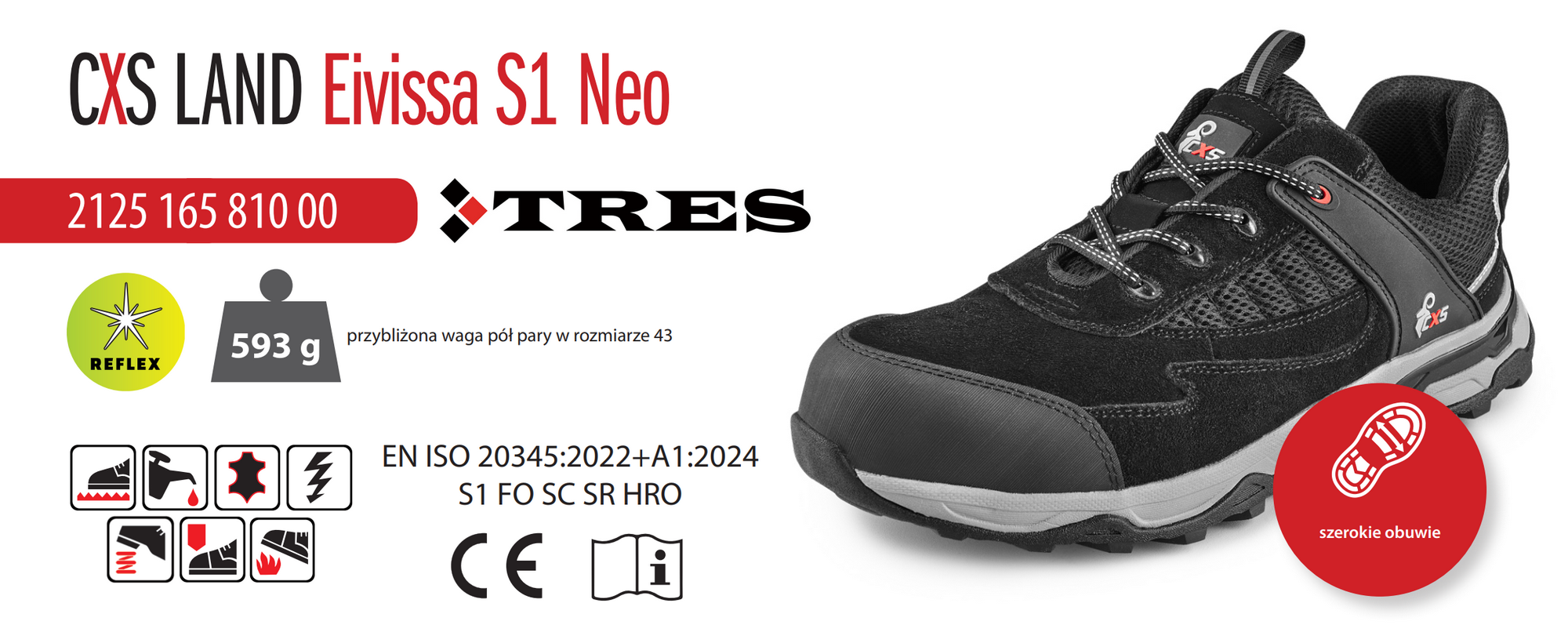 | Normy bezpieczeństwa | EN ISO 20345:2022+A1:2024S1 FO SC SR HRO |