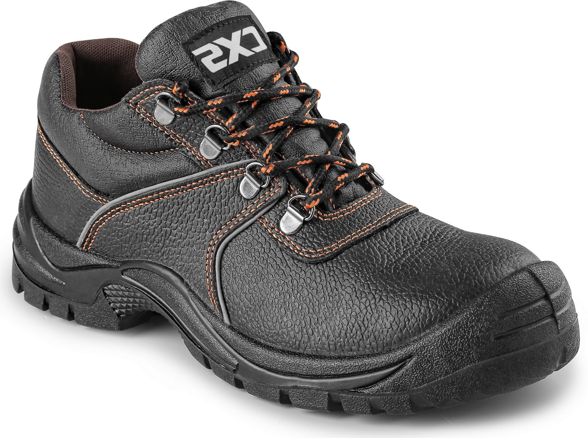 Półbuty robocze Pyrit to obuwie wykonane w klasie ochronnej S3. Buty posiadają metalowy podnosek, który chroni stopę przed uszkodzeniem w wyniku upadku z siłą do 200J oraz przed zgnieceniem z siłą do 15kN. Nosek pokryty jest warstwą poliuretanu chroniącą przed przetarciem. Wkładka antyprzebiciowa dodatkowo chroni stopę przed przekłuciem ostrym przedmiotem od strony podłoża. Buty robocze CXS Pyrit posiadają również podwyższoną wodoodporność oraz absorpcje energii w części piętowej.