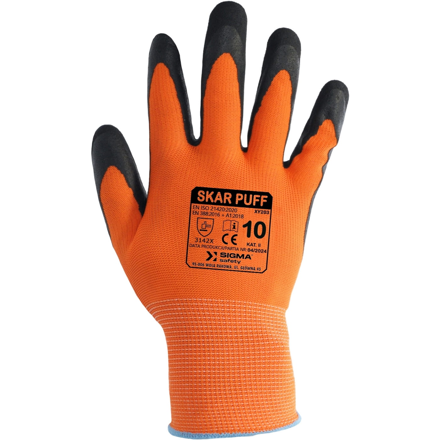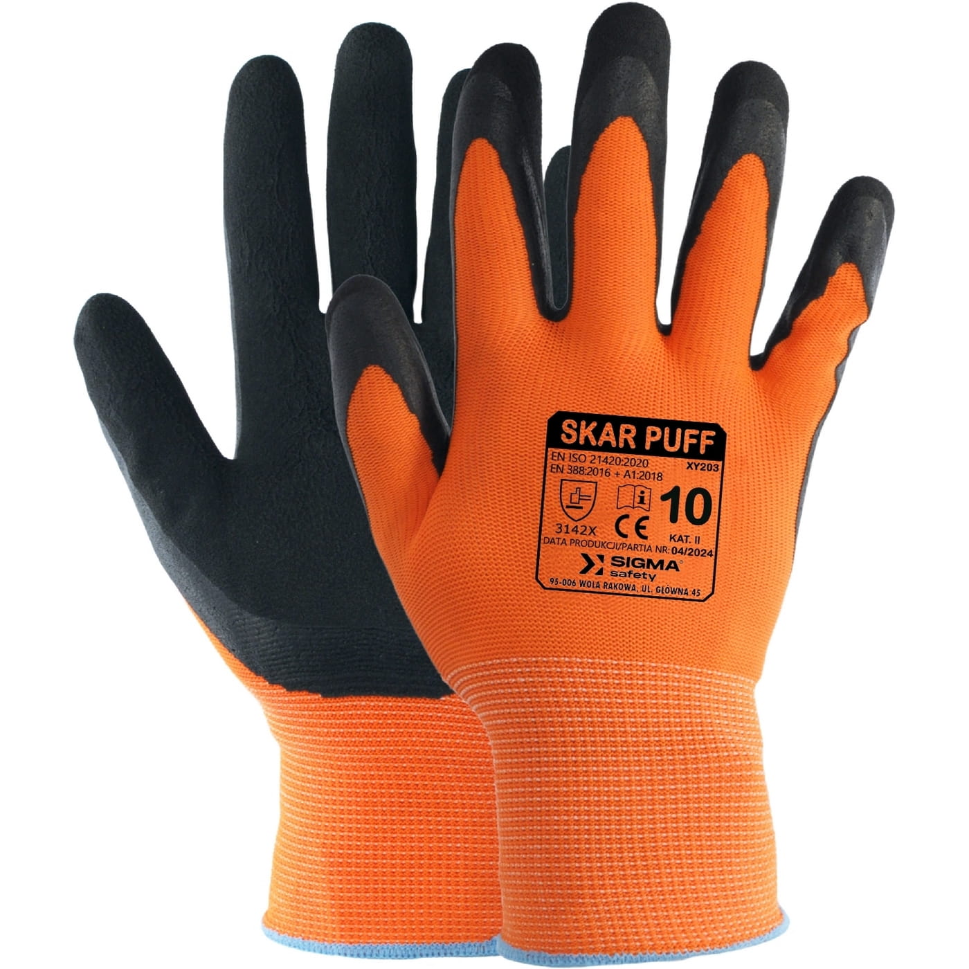 - rękawice ochronne z dzianiny poliestrowej powlekane miękką warstwą spienionego lateksu