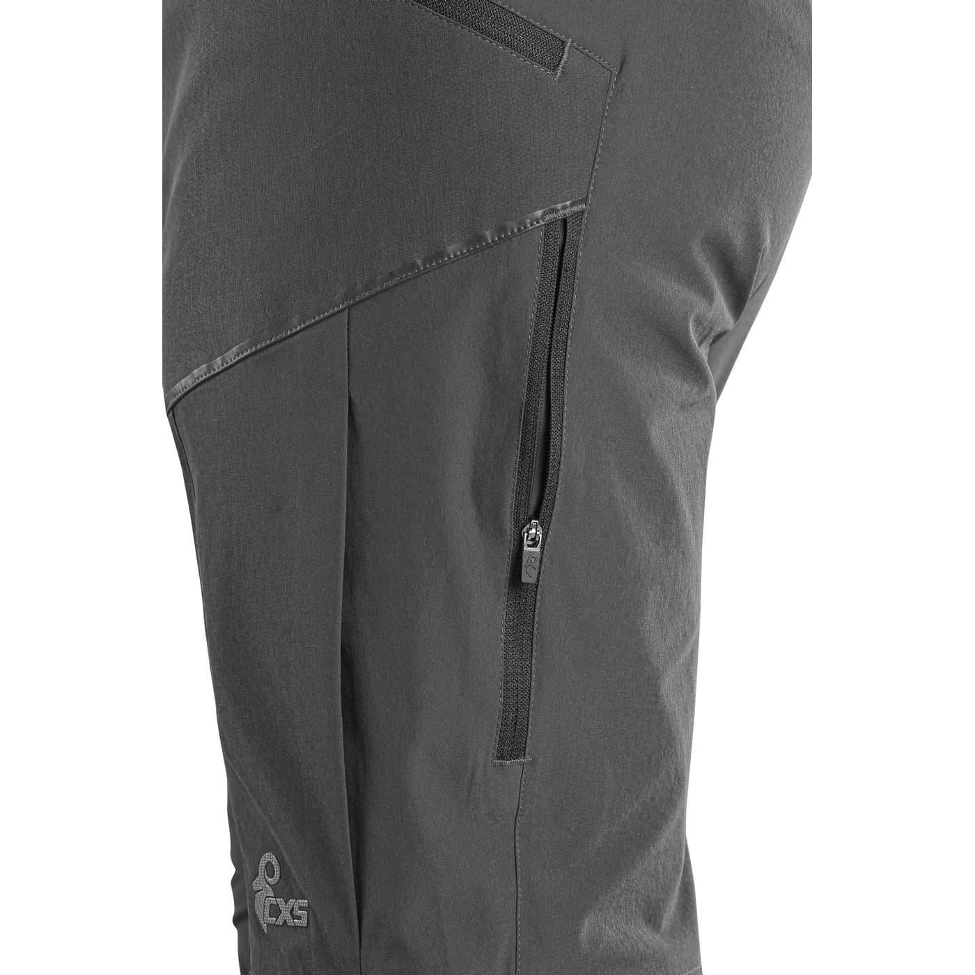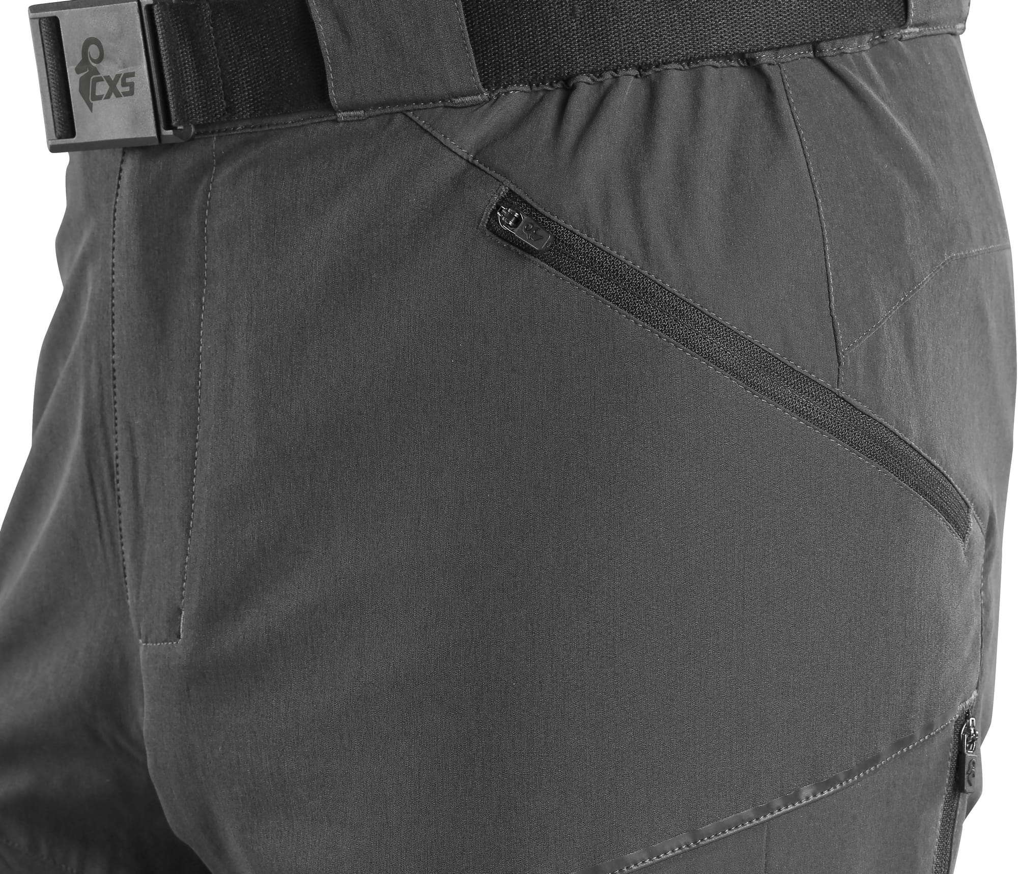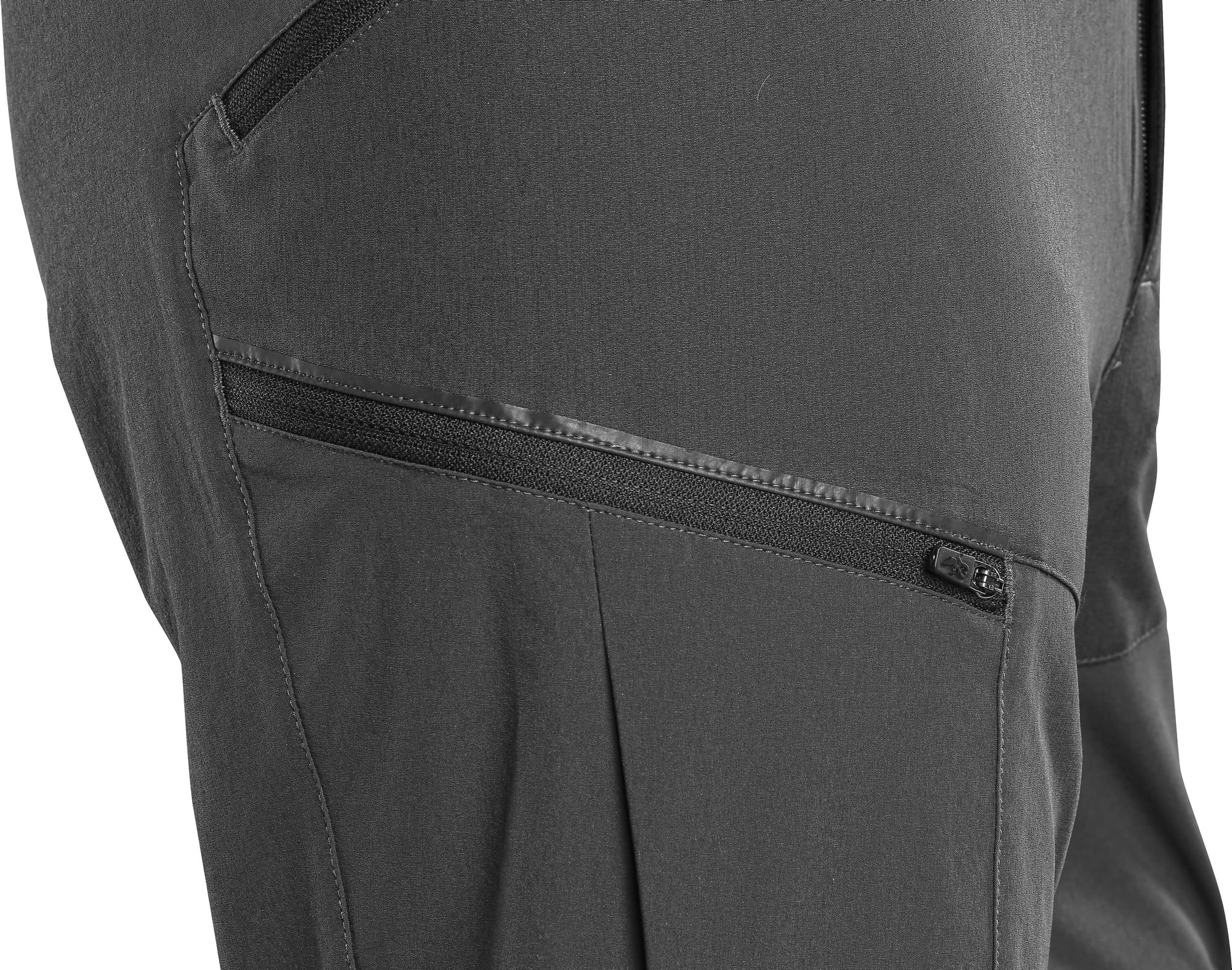 - kieszenie boczne, kieszenie na udach na zamek oraz tylna kieszeń na zamek