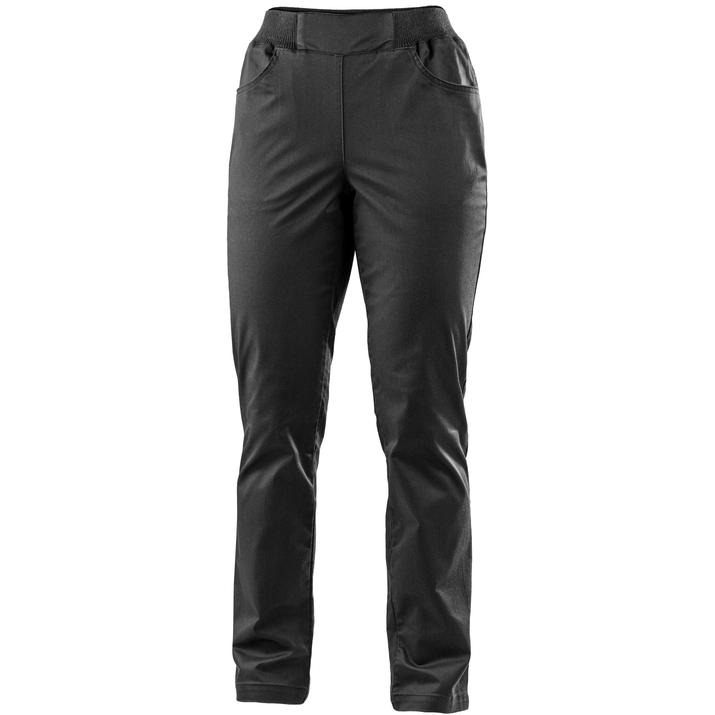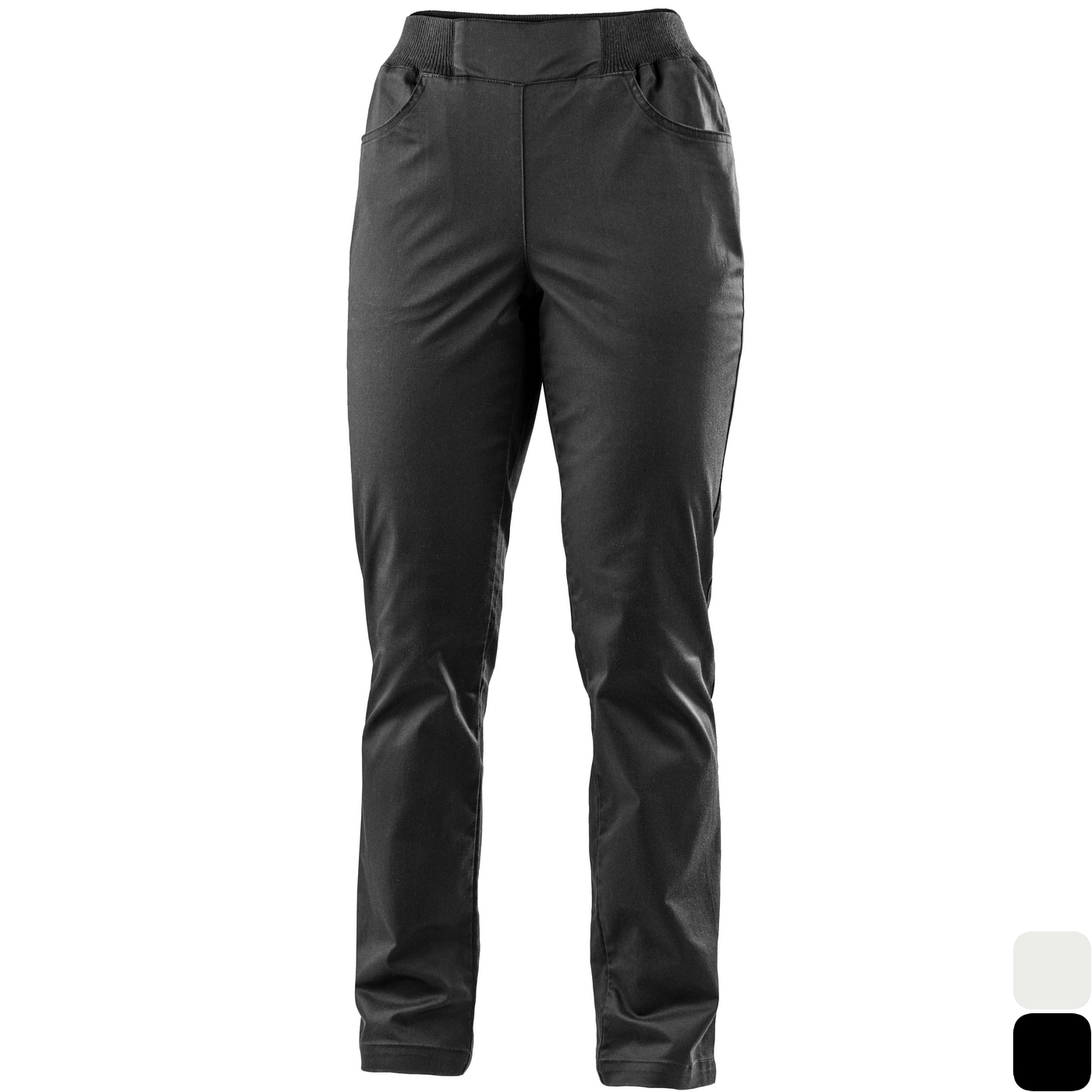 - damskie spodnie do pasa z tkaniny stretch, zaprojektowane z myślą o wygodnym noszeniu przez cały dzień pracy