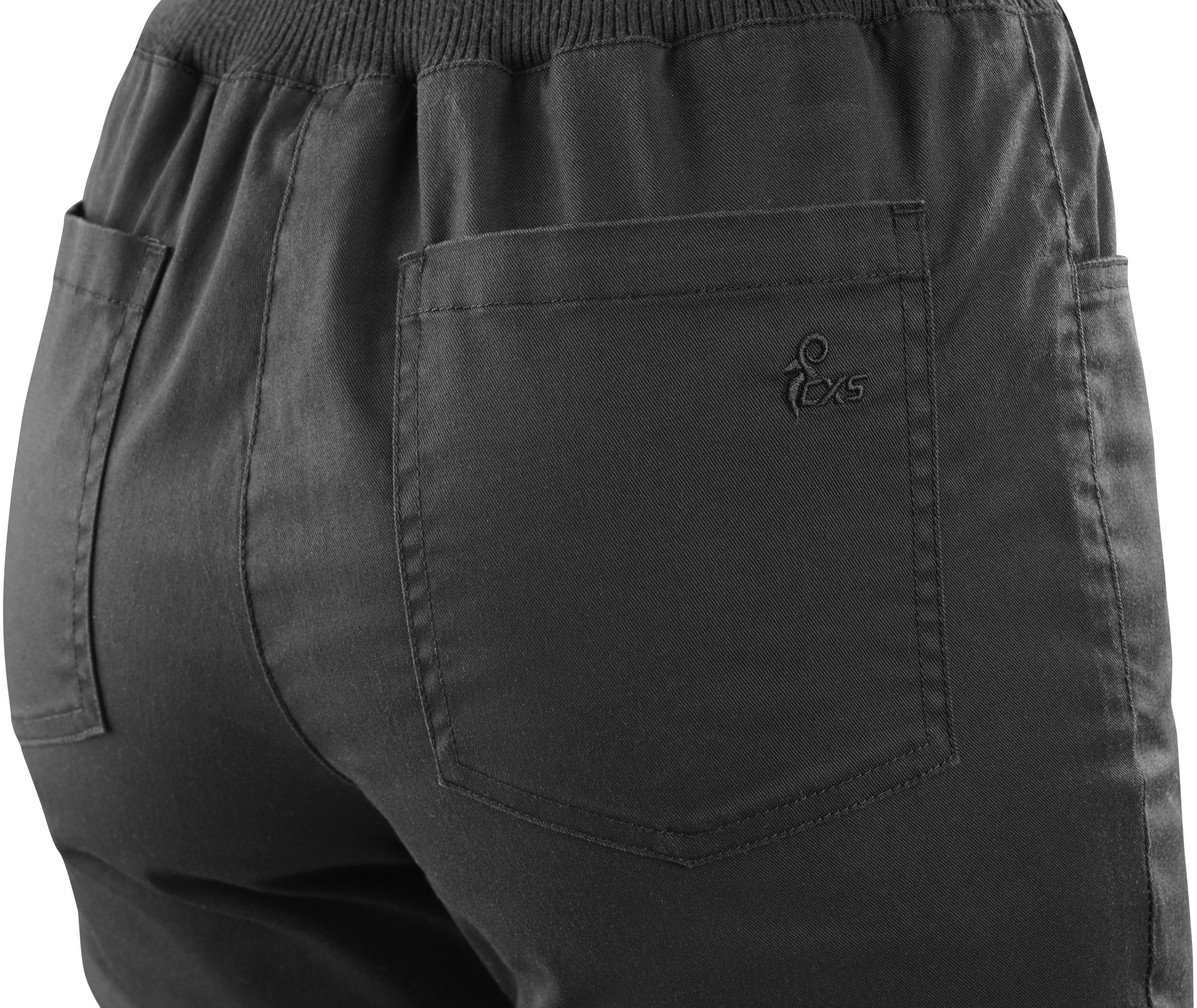 - w pasie spodnie zostały uzupełnione częściowo elastycznym, prążkowanym materiałem, który dobrze dopasowuje się do sylwetki i zwiększa wygodę noszenia