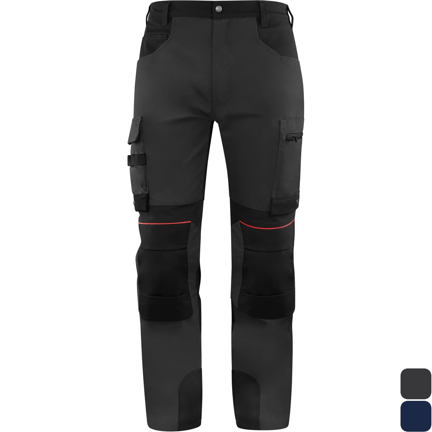 - dziesięć funkcjonalnych kieszeni: jedna kieszeń zapinana na zamek, kieszeń na miarkę, kieszonka na telefon, trzy kieszenie naszywane, dwie kieszenie boczne i dwie kieszenie na nakolanniki