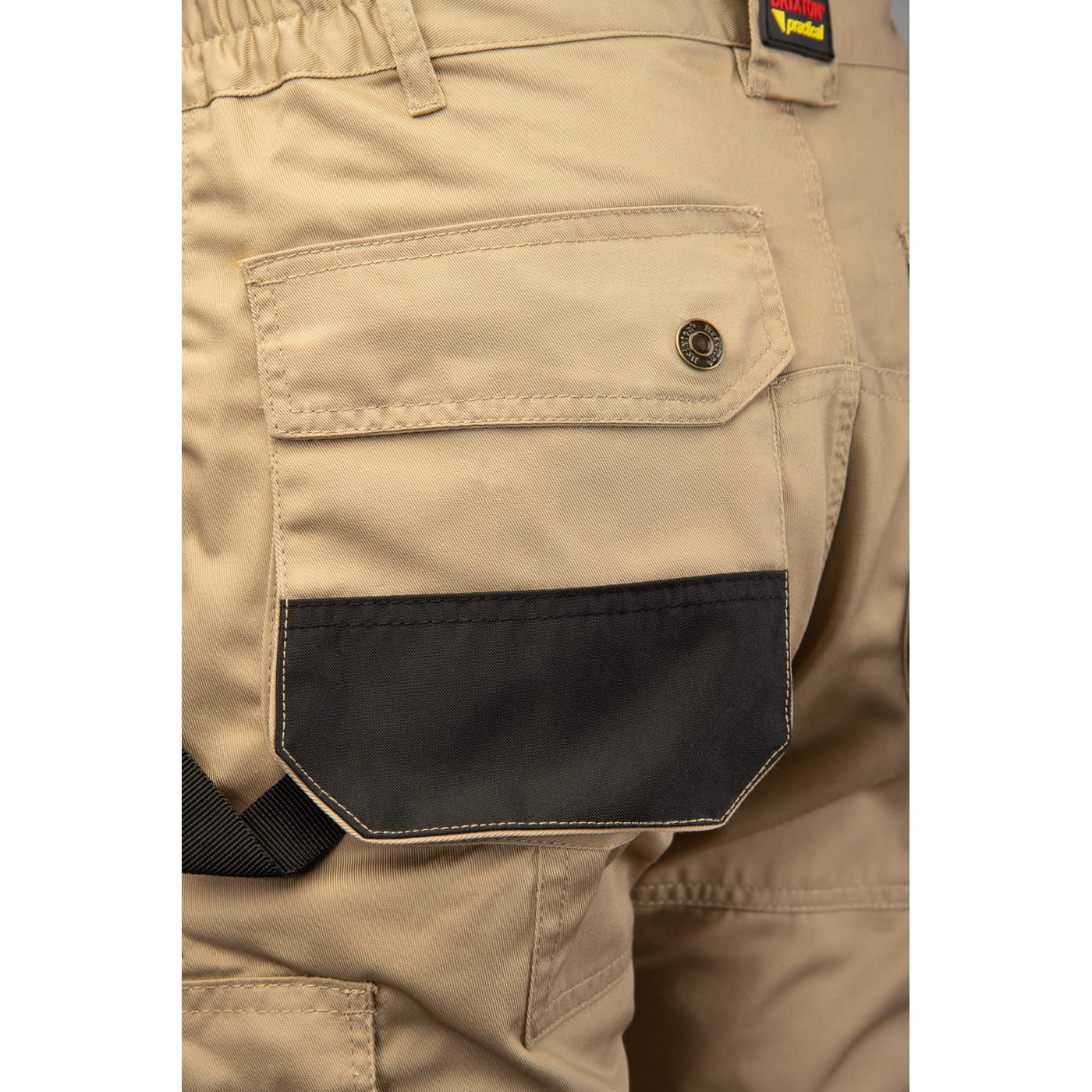 - wiele praktycznych kieszeni: kieszeń na zamek, dwie kieszenie boczne, dwie kieszonki na długopisy, ergonomiczna kieszeń na nakolanniki wykonana z Oxfordu, kieszeń na miarkę „metrówkę”, dwie kieszenie w tylnej części spodni, przestrzenne kieszenie, wzmocnione kieszenie boczne i kieszeń na komórkę