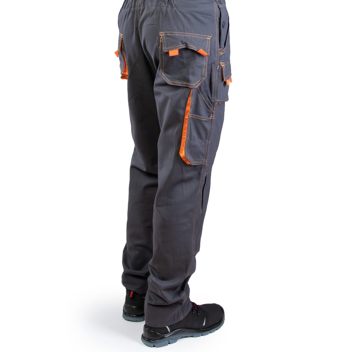 - kieszenie: wzmocnione kieszenie boczne, dwie kieszenie w tylnej części spodni, kieszeń na miarkę i ergonomiczna kieszeń na nakolanniki