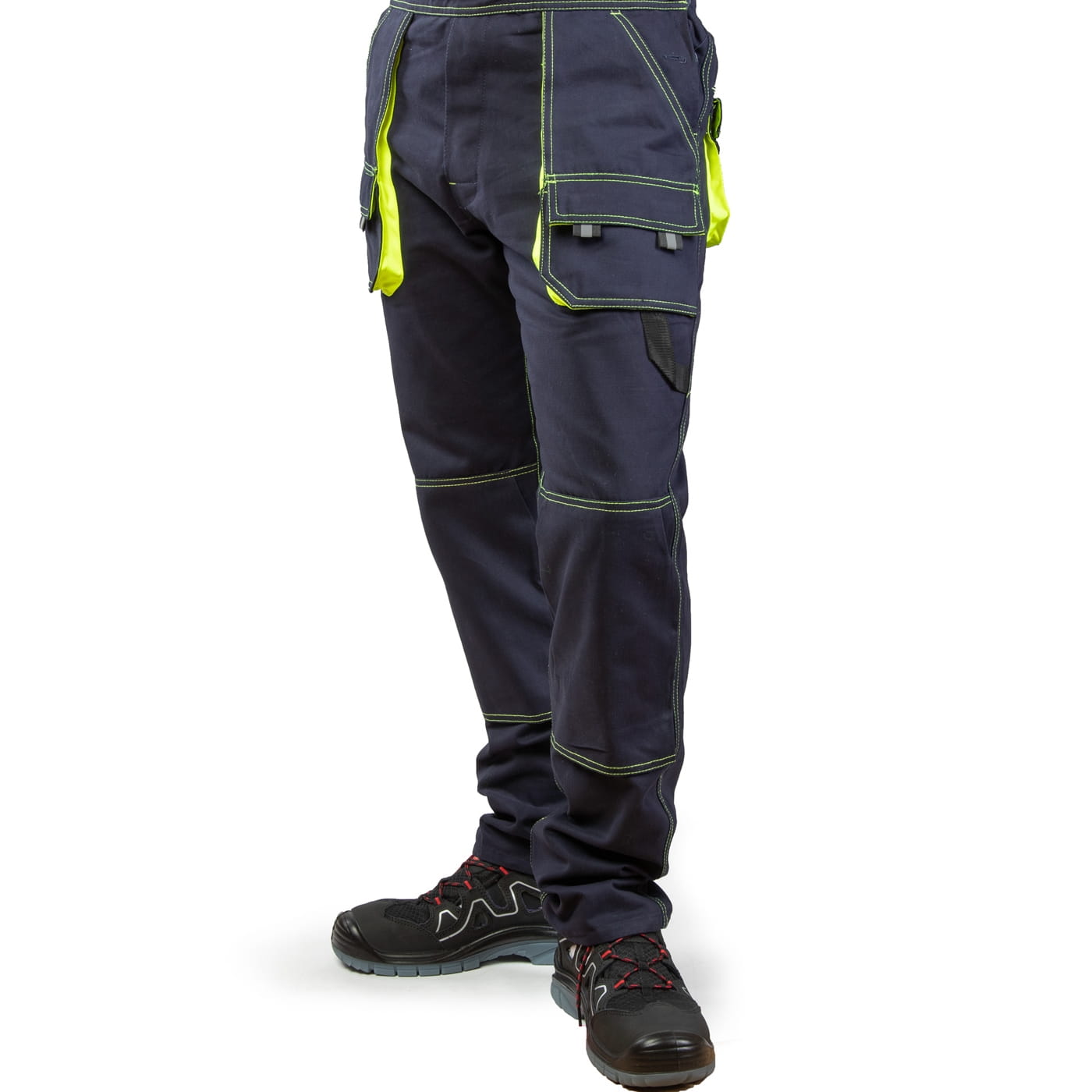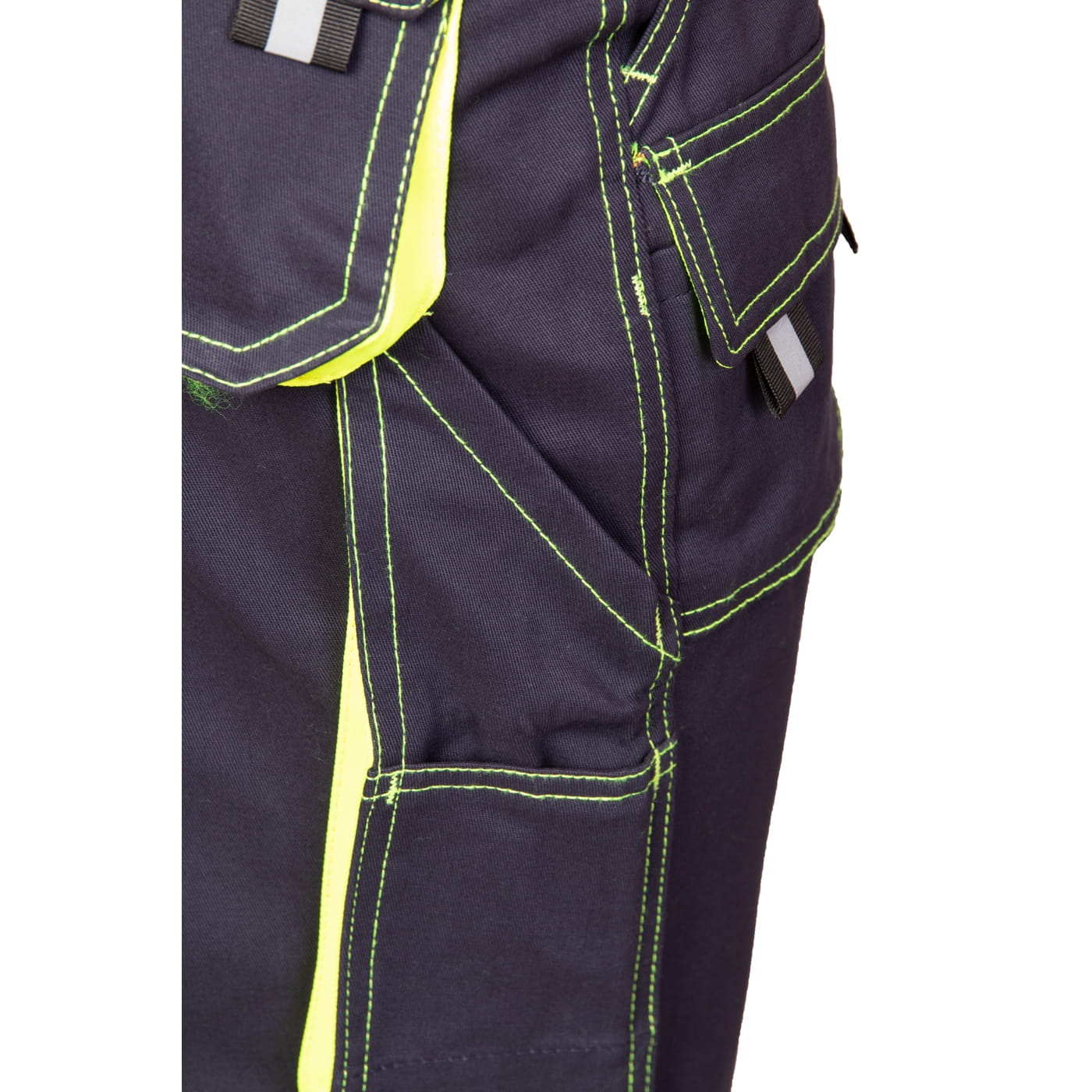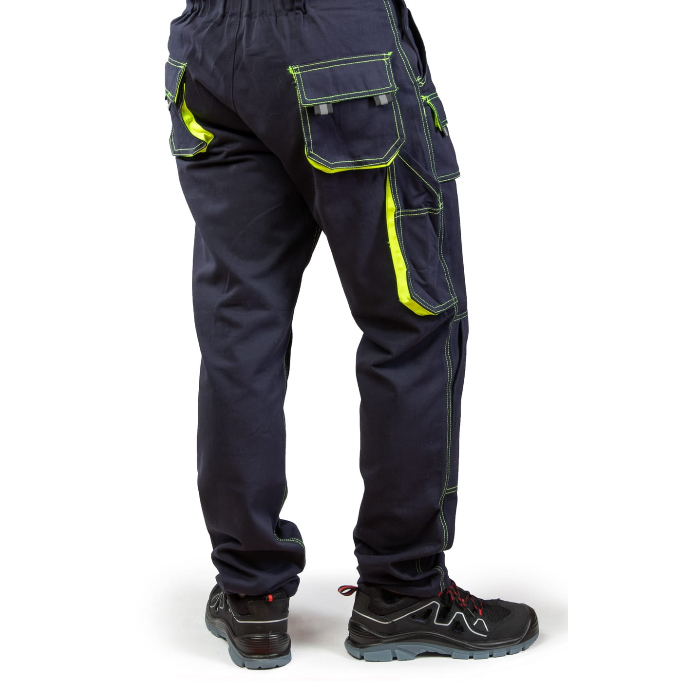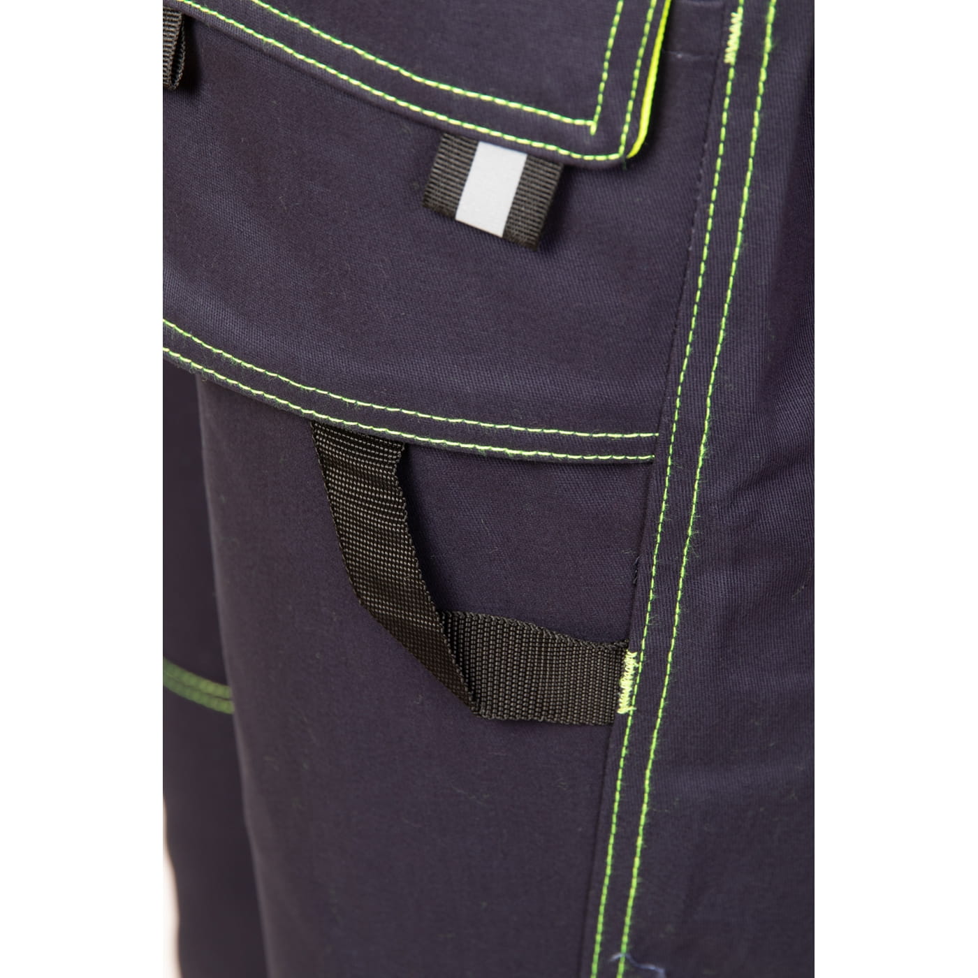 - kieszenie: wzmocnione kieszenie boczne, dwie kieszenie w tylnej części spodni, kieszeń na miarkę i ergonomiczna kieszeń na nakolanniki