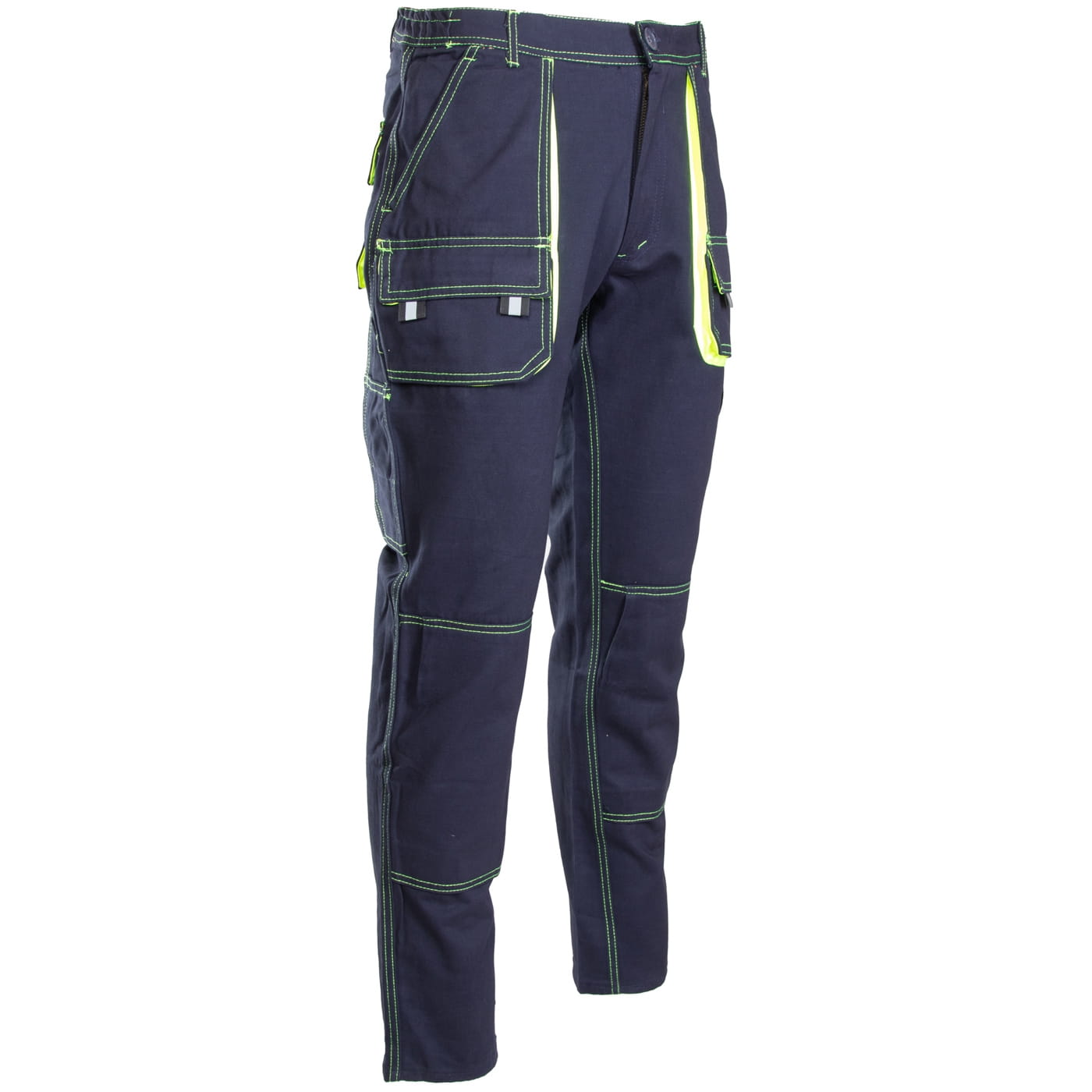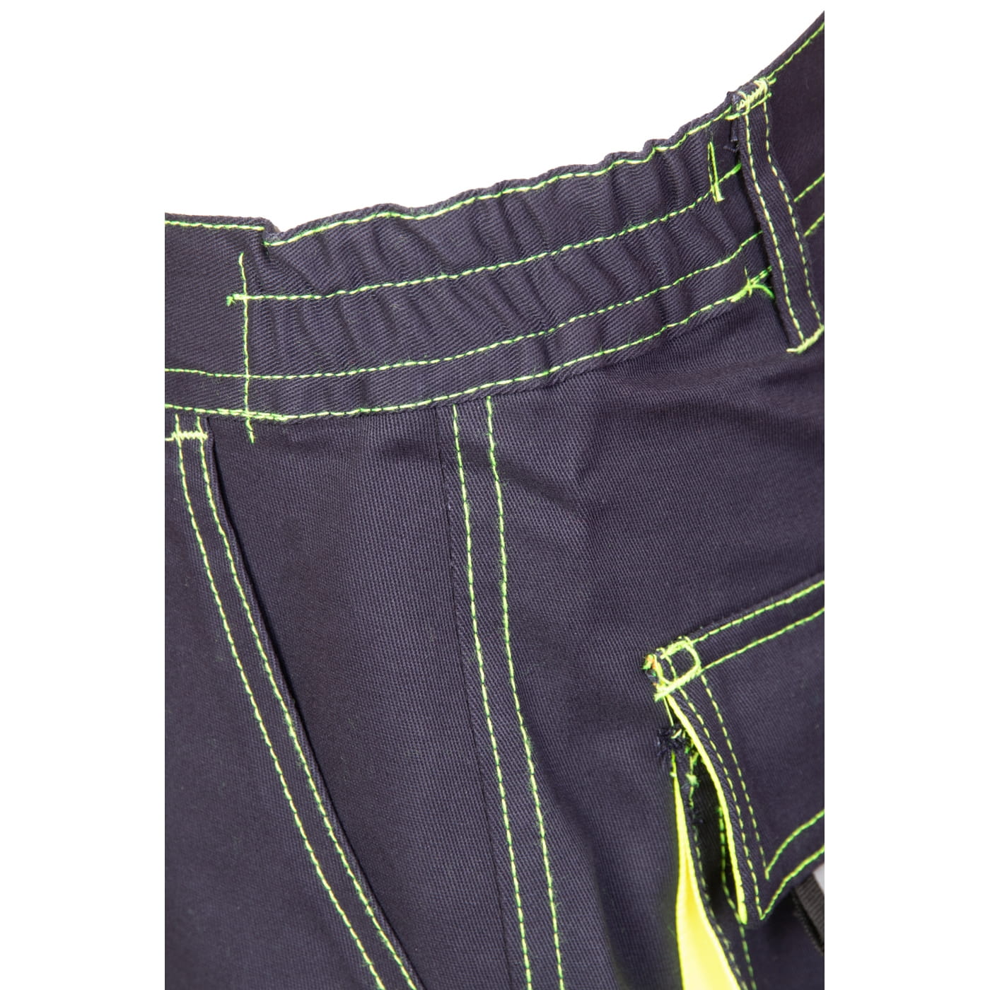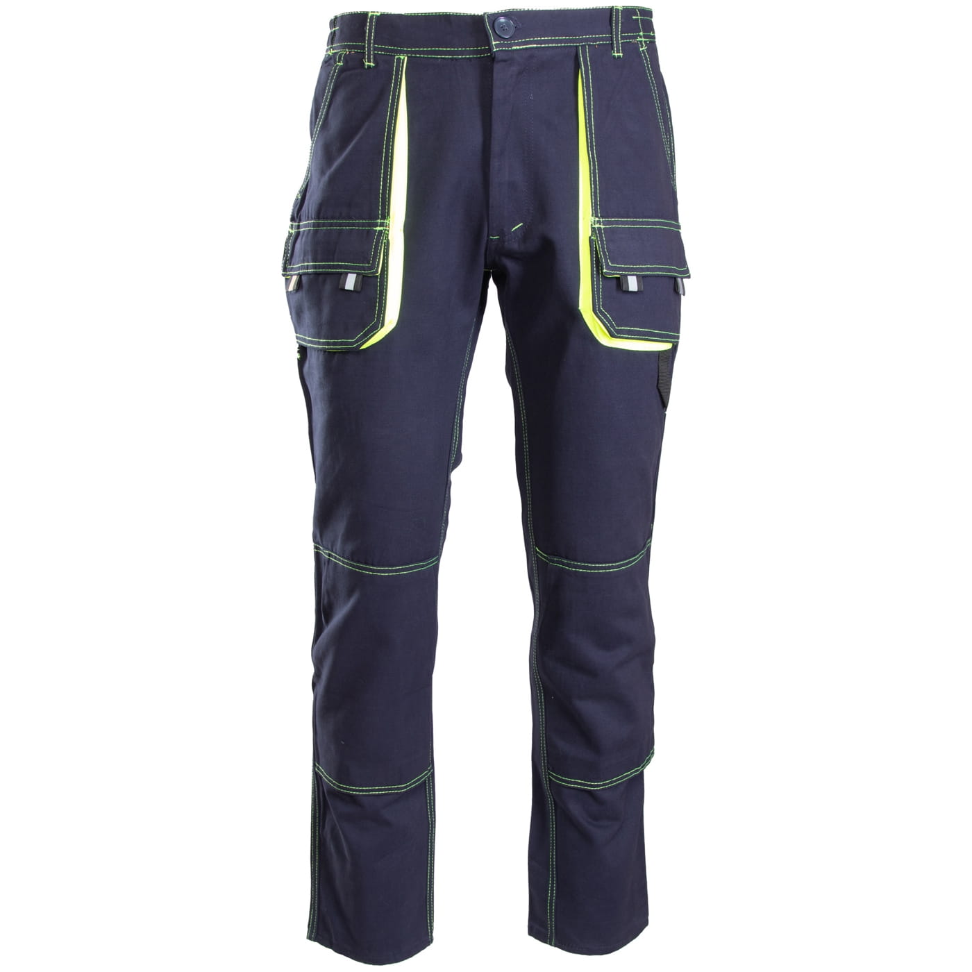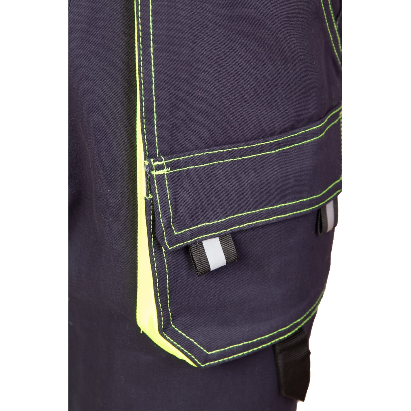 - kieszenie: wzmocnione kieszenie boczne, dwie kieszenie w tylnej części spodni, kieszeń na miarkę i ergonomiczna kieszeń na nakolanniki