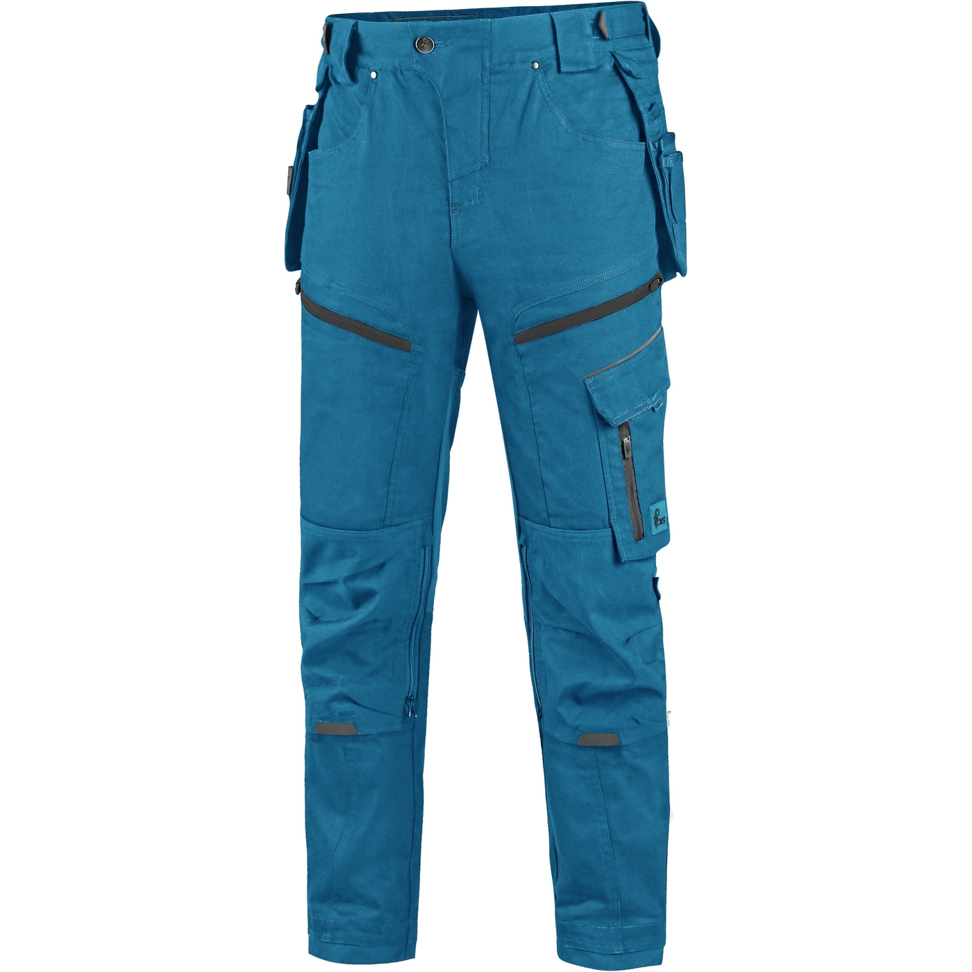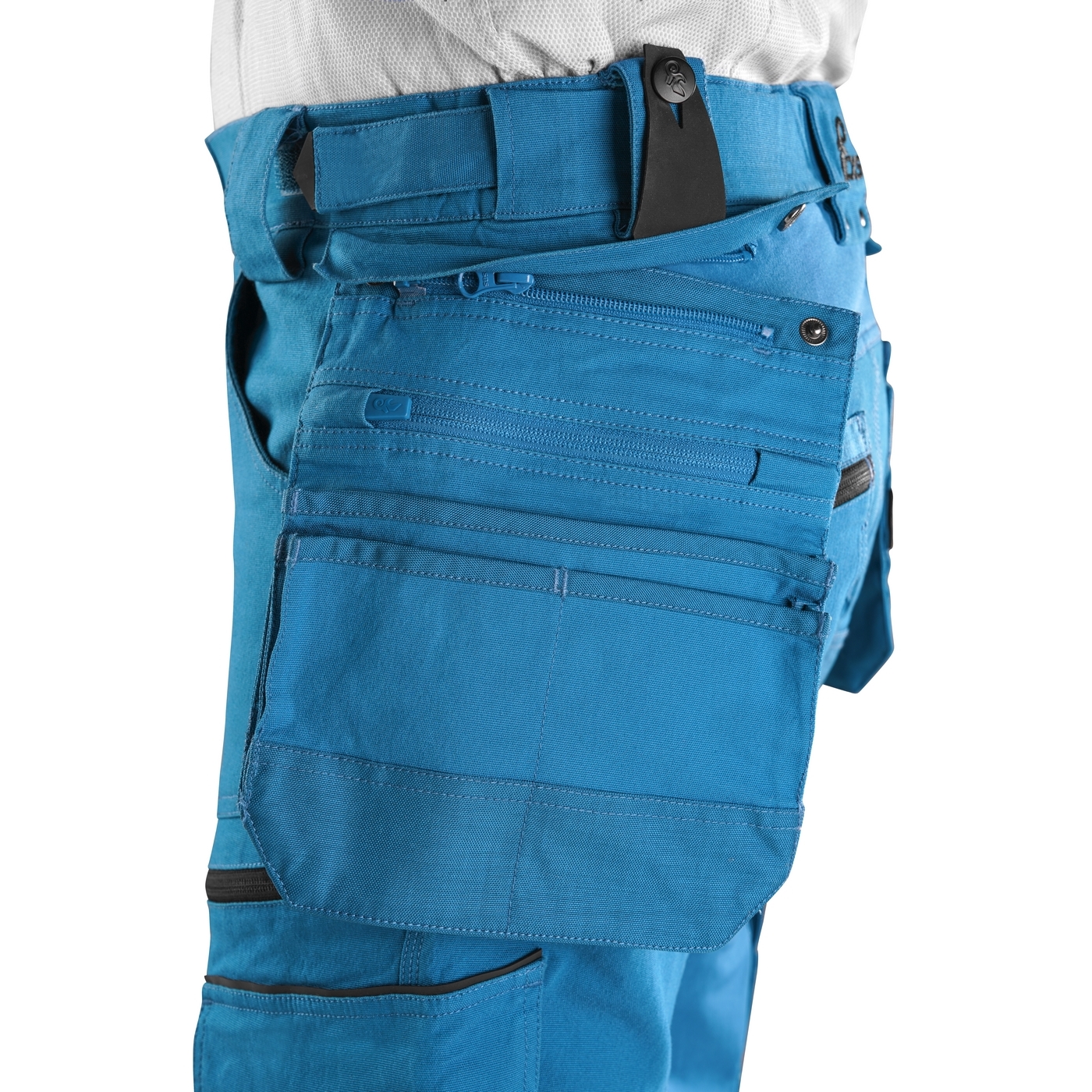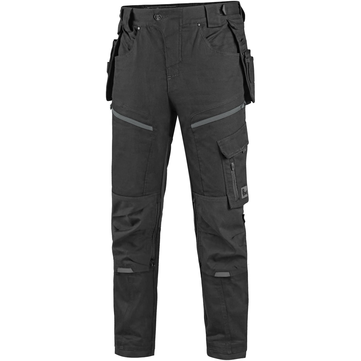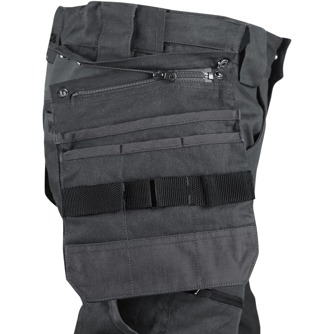 - kieszenie: dwie kieszenie z przodu, dwie odpinane kieszenie na narzędzia wzmocnione materiałem Cordura®, kieszenie na udach na zamek z możliwością wentylacji, kieszeń z boku z dodatkową kieszonką na zamek, dwie tylne kieszenie (jedna na zamek) wzmocnione materiałem Cordura®, kieszeń na metr składany z dalszymi przegródkami oraz kieszonka na kartę ID