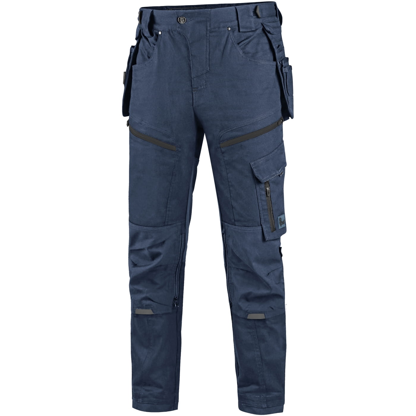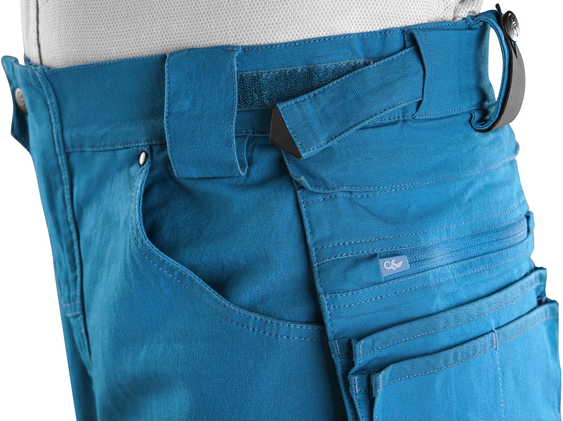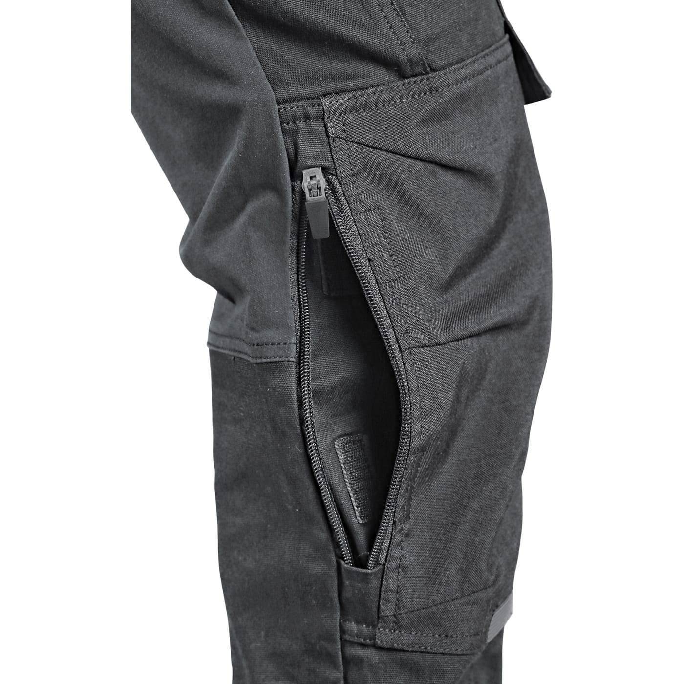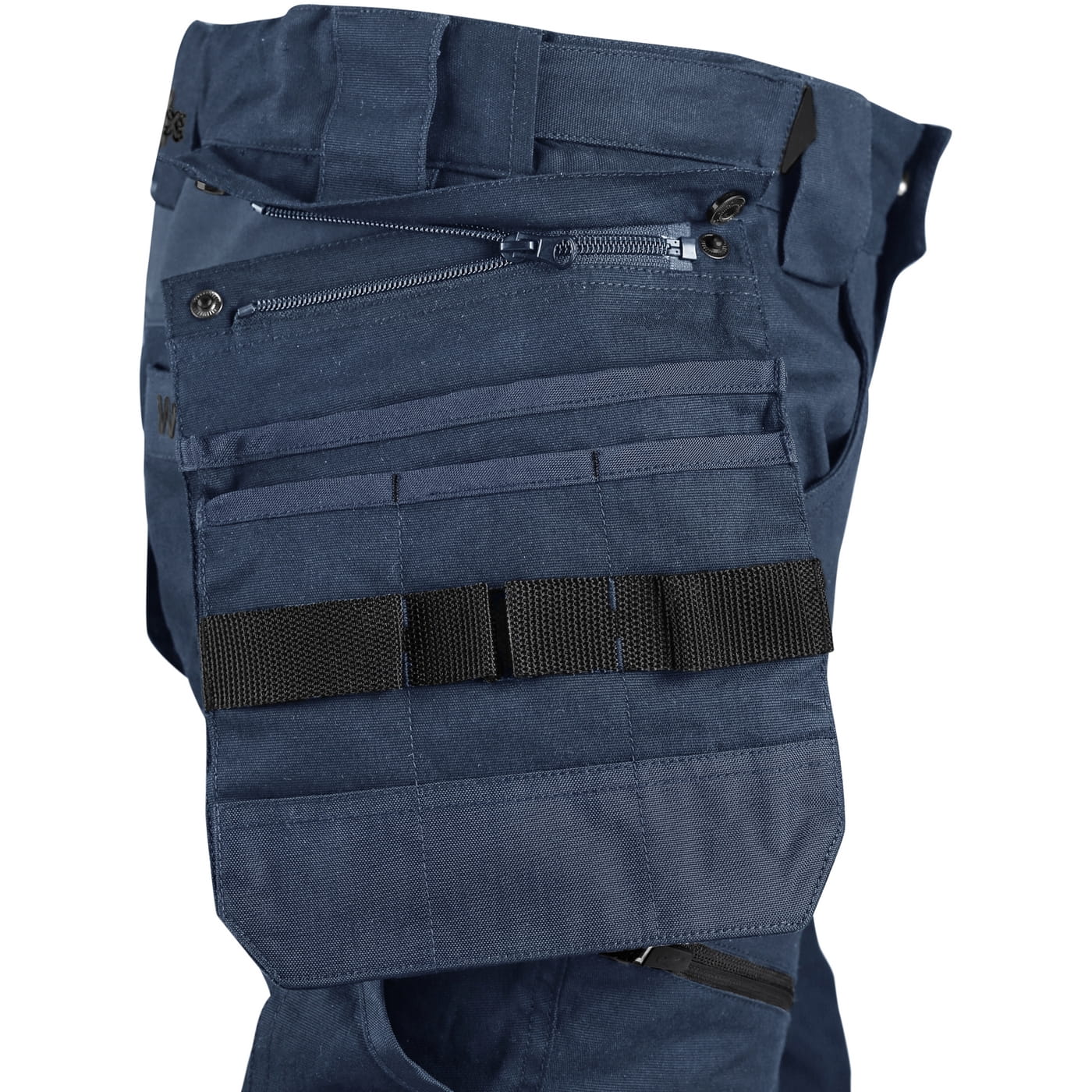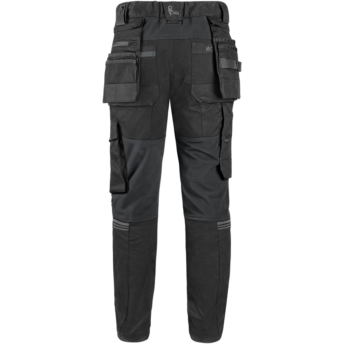 - kieszenie: dwie kieszenie z przodu, dwie odpinane kieszenie na narzędzia wzmocnione materiałem Cordura®, kieszenie na udach na zamek z możliwością wentylacji, kieszeń z boku z dodatkową kieszonką na zamek, dwie tylne kieszenie (jedna na zamek) wzmocnione materiałem Cordura®, kieszeń na metr składany z dalszymi przegródkami oraz kieszonka na kartę ID