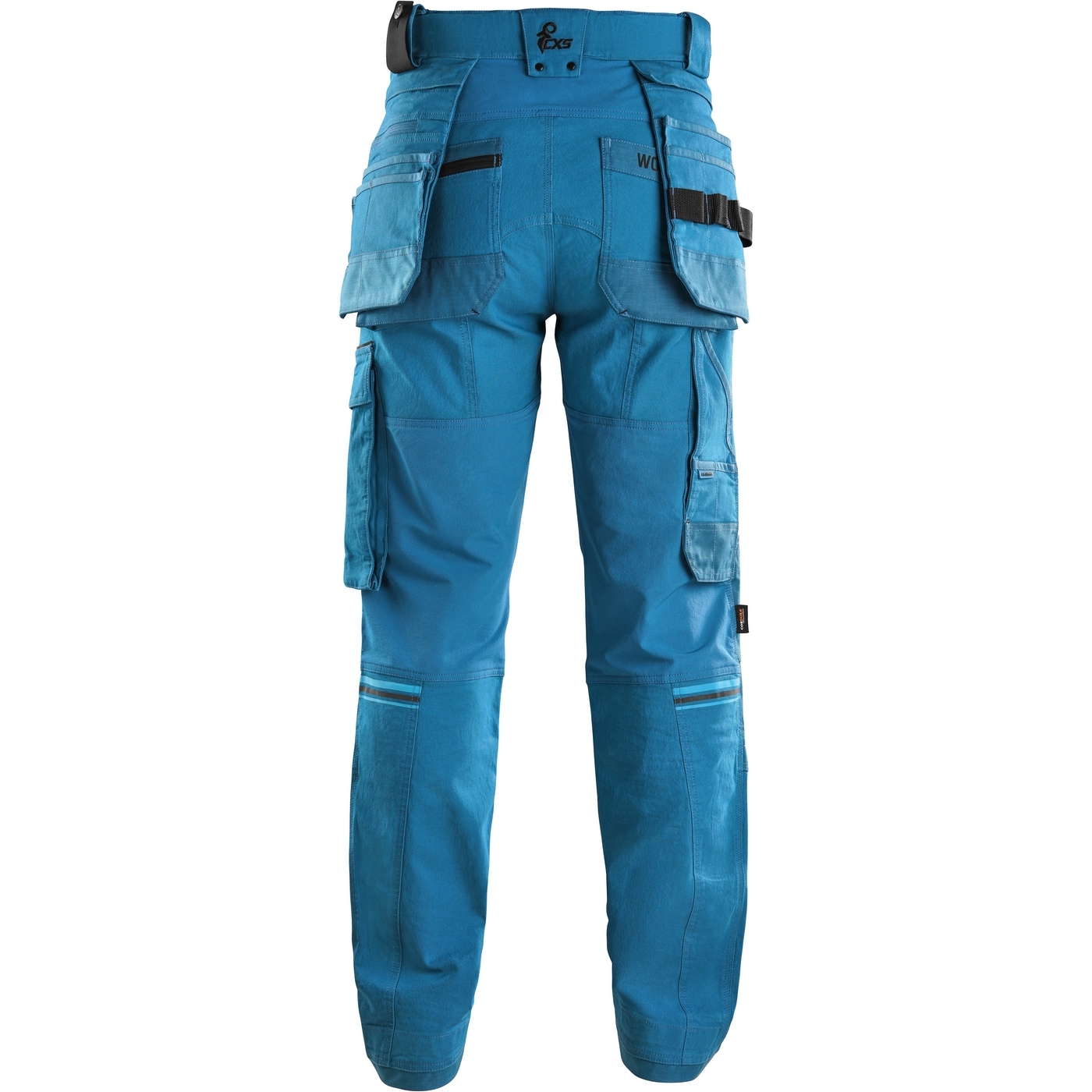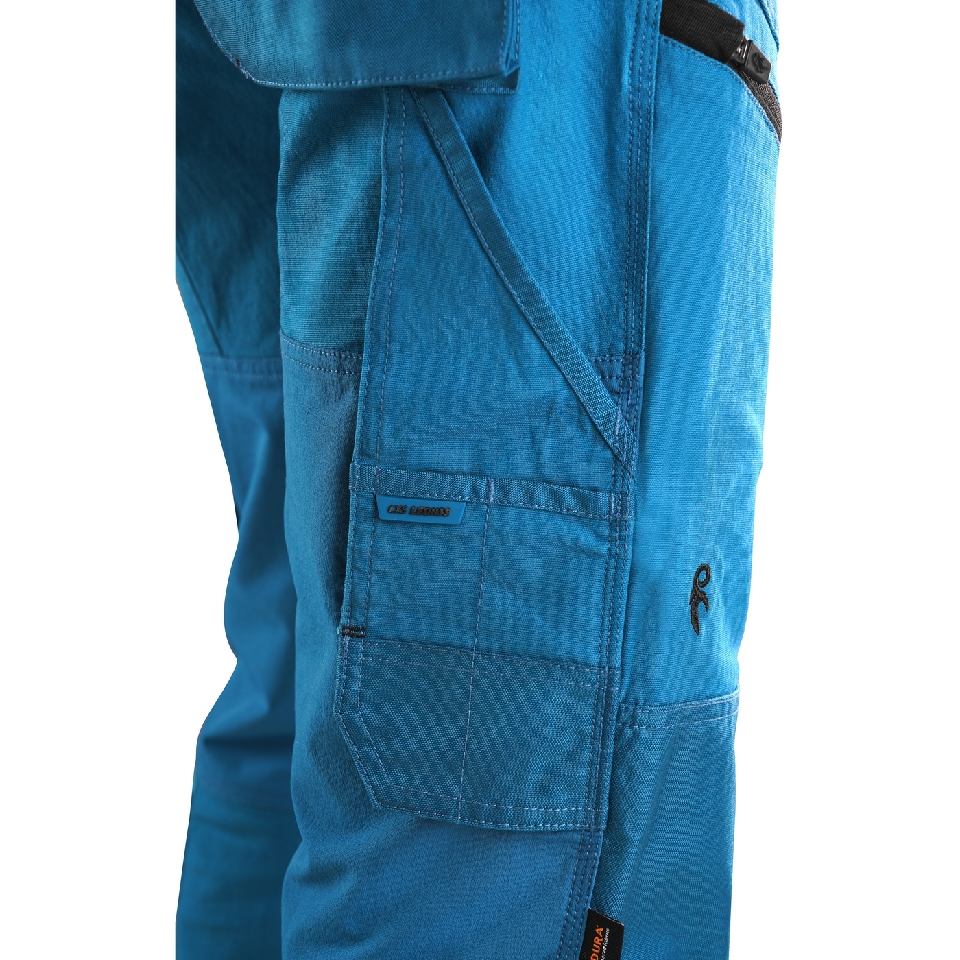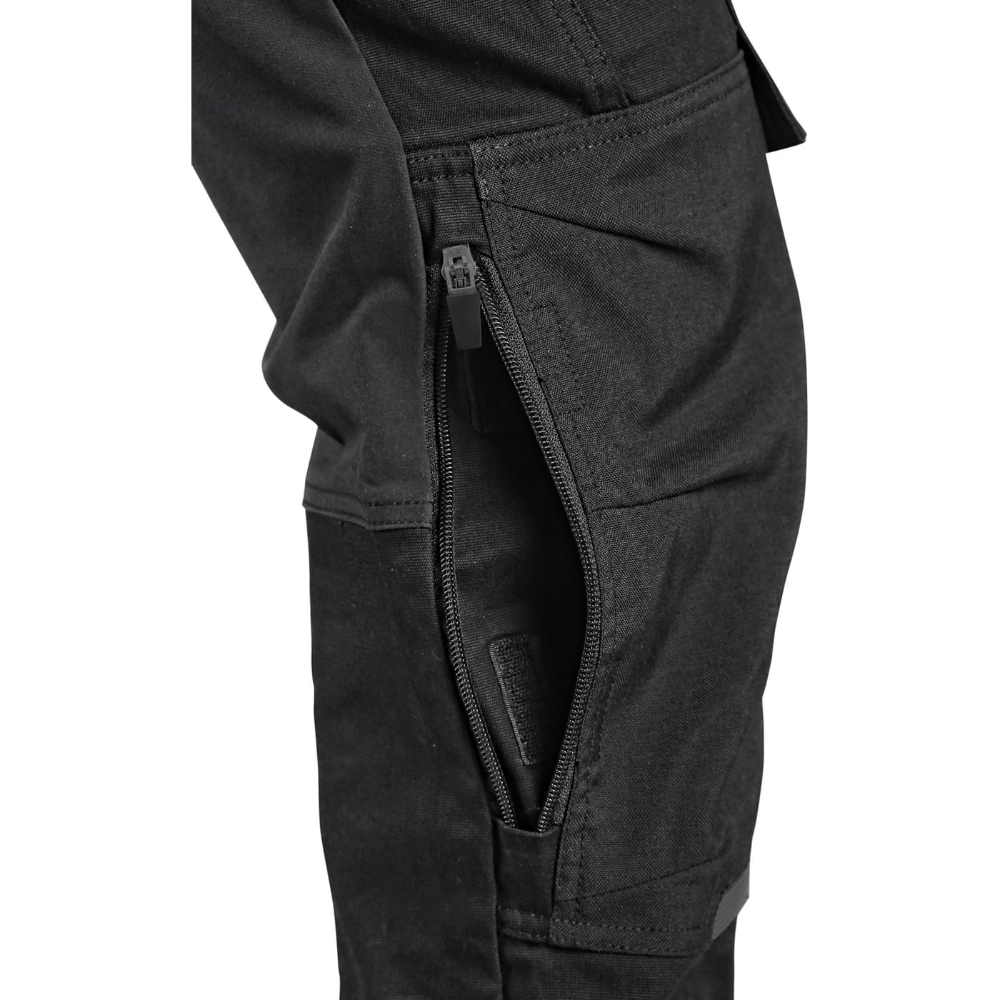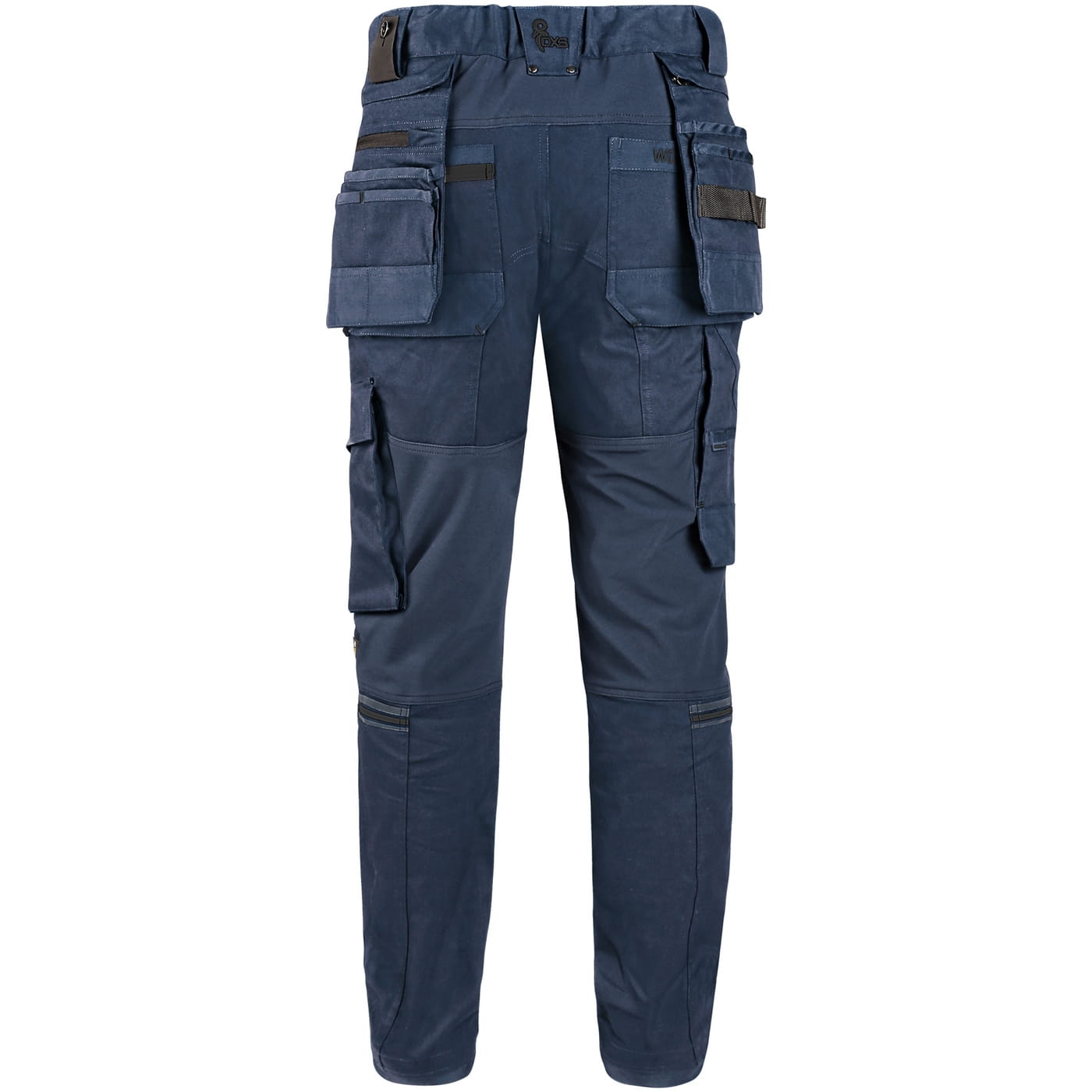 - kieszenie: dwie kieszenie z przodu, dwie odpinane kieszenie na narzędzia wzmocnione materiałem Cordura®, kieszenie na udach na zamek z możliwością wentylacji, kieszeń z boku z dodatkową kieszonką na zamek, dwie tylne kieszenie (jedna na zamek) wzmocnione materiałem Cordura®, kieszeń na metr składany z dalszymi przegródkami oraz kieszonka na kartę ID