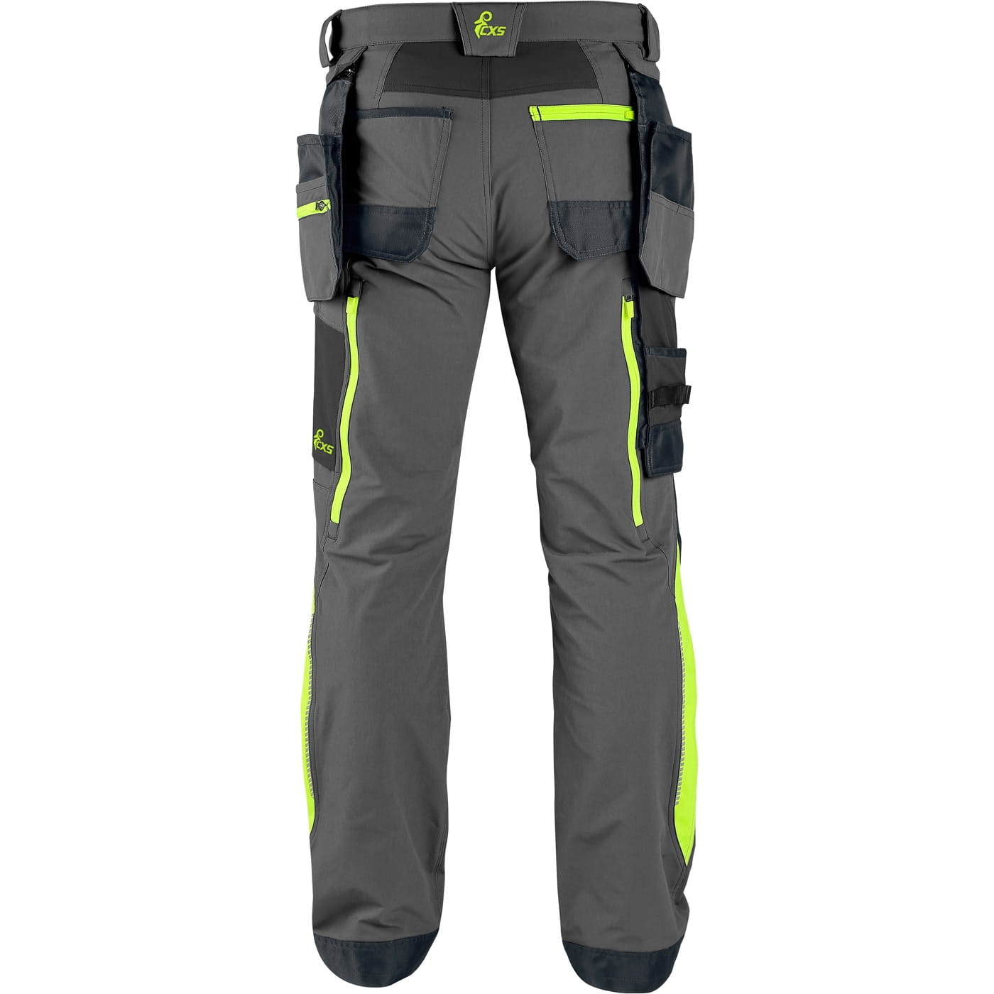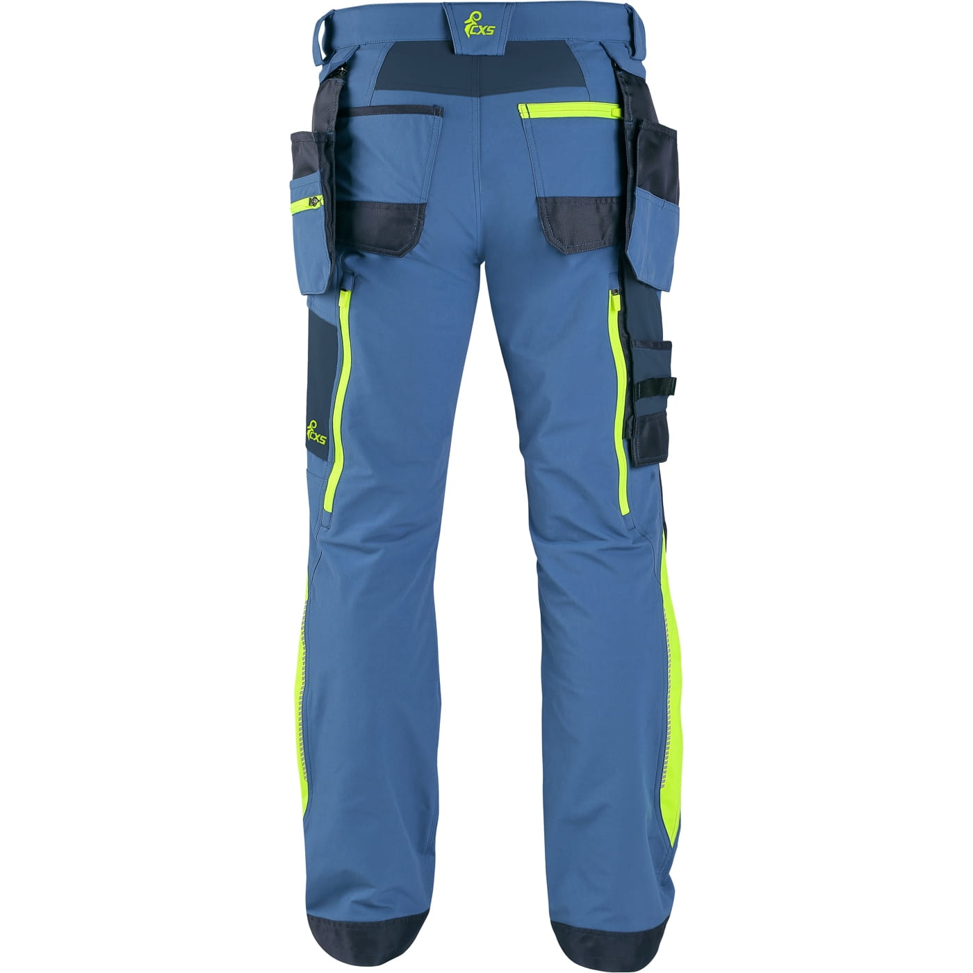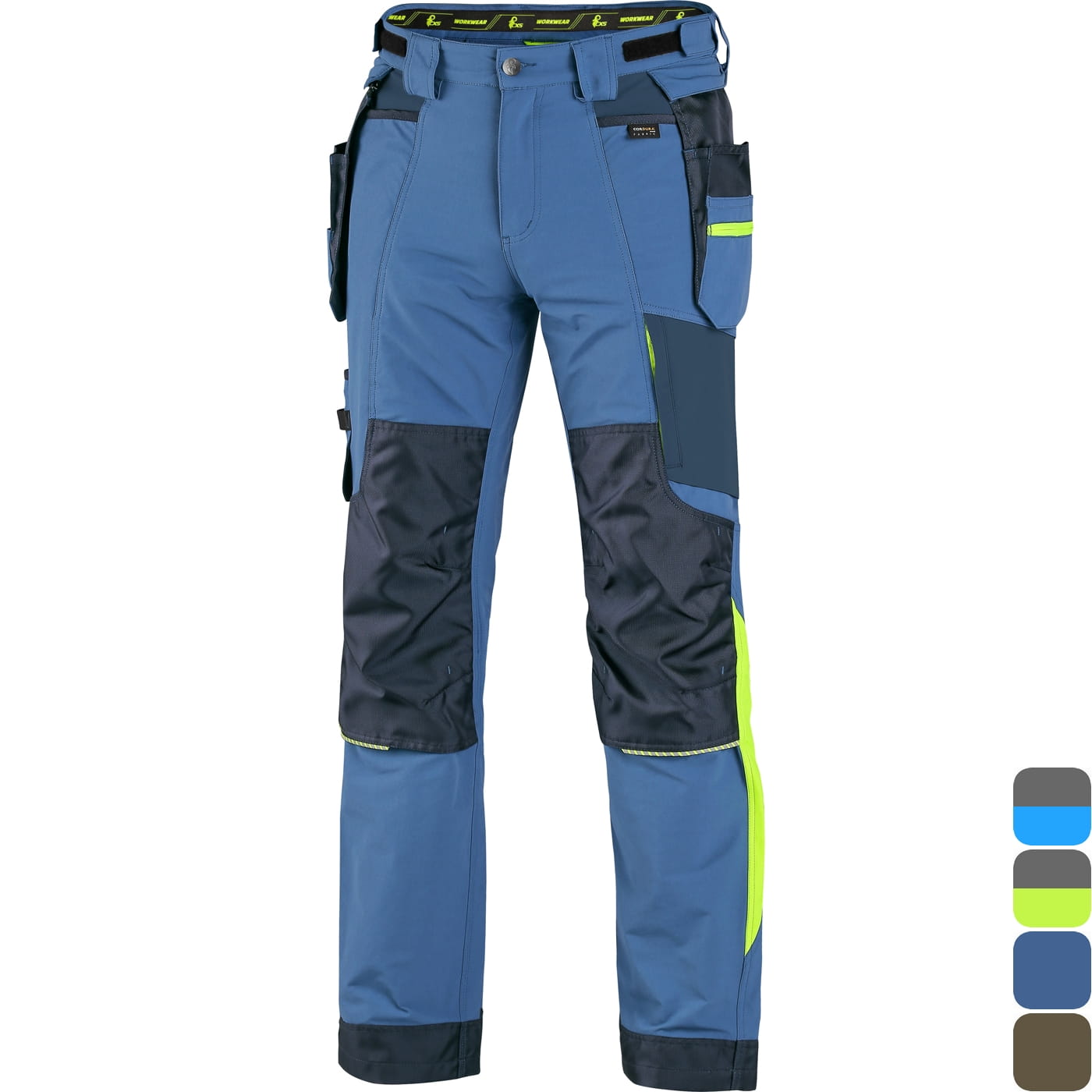 - męskie spodnie robocze z kontrastującymi kolorowymi i odblaskowymi dodatkami