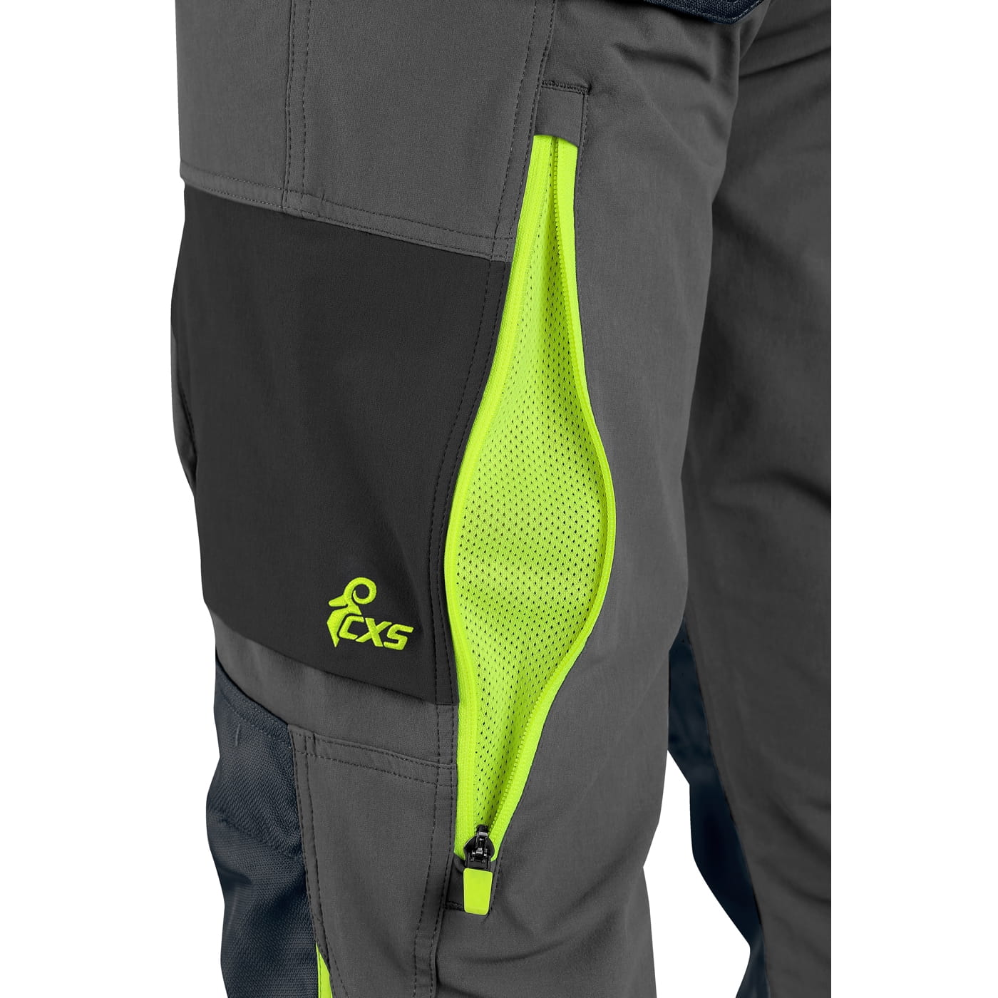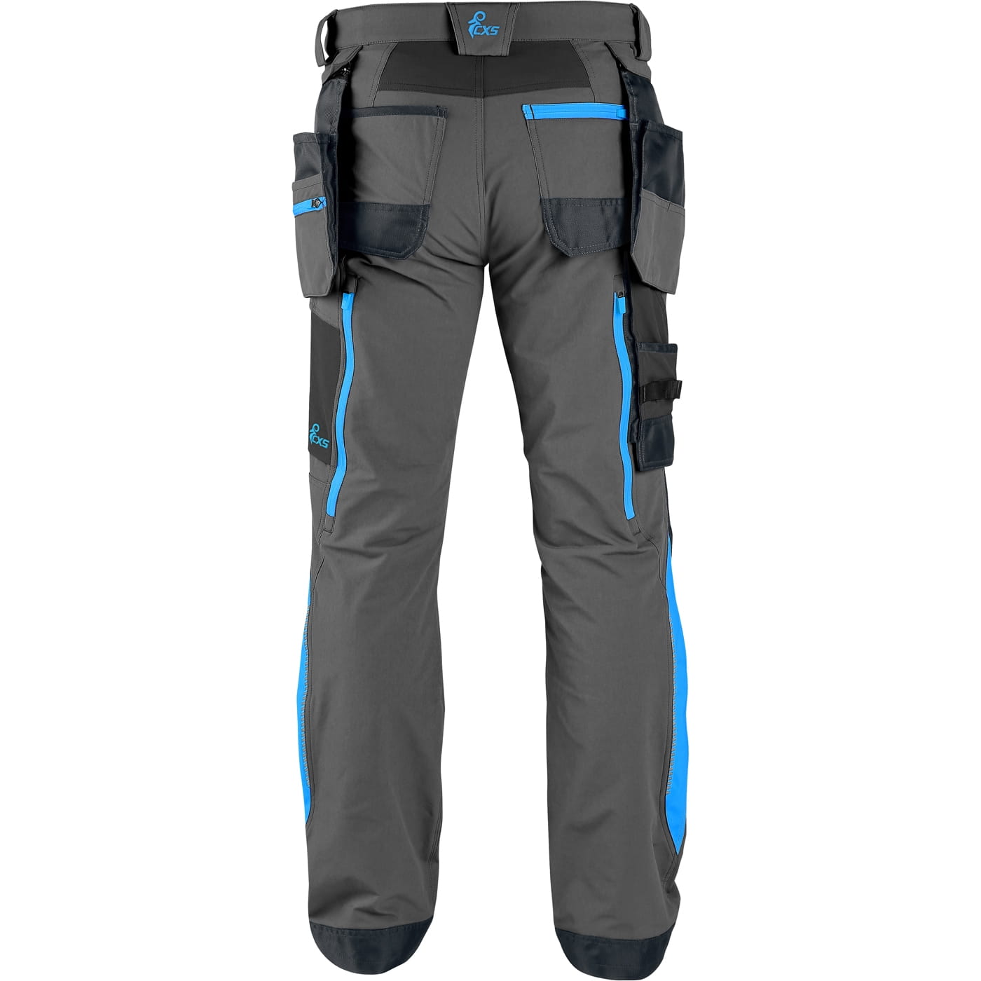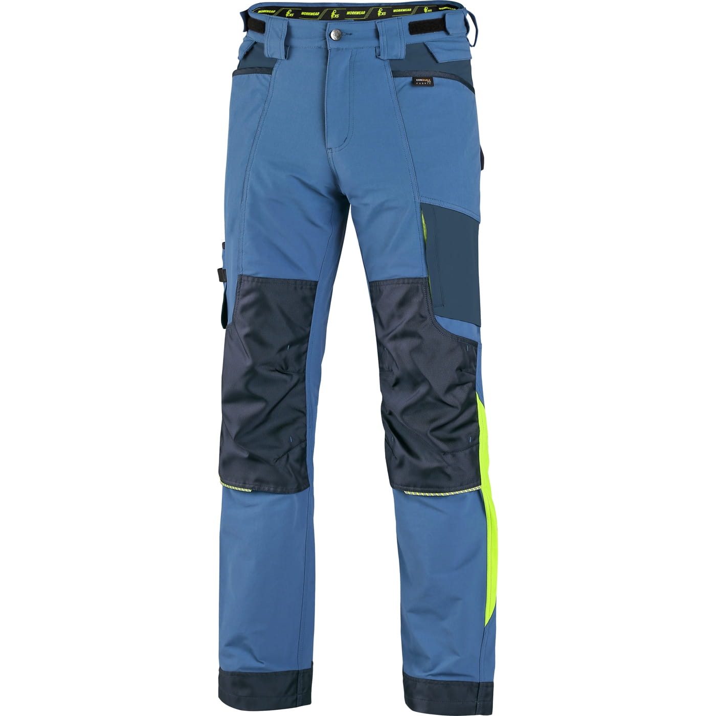 - męskie spodnie robocze z kontrastującymi kolorowymi i odblaskowymi dodatkami