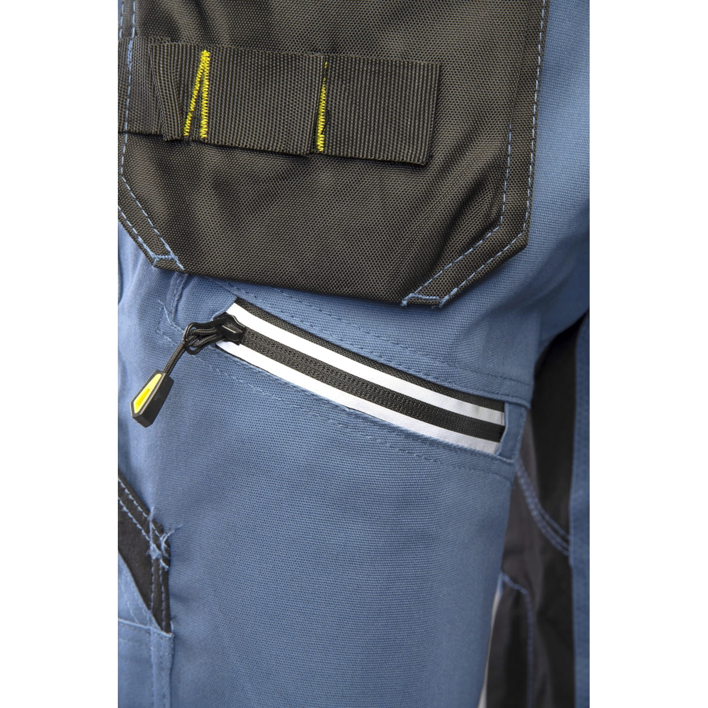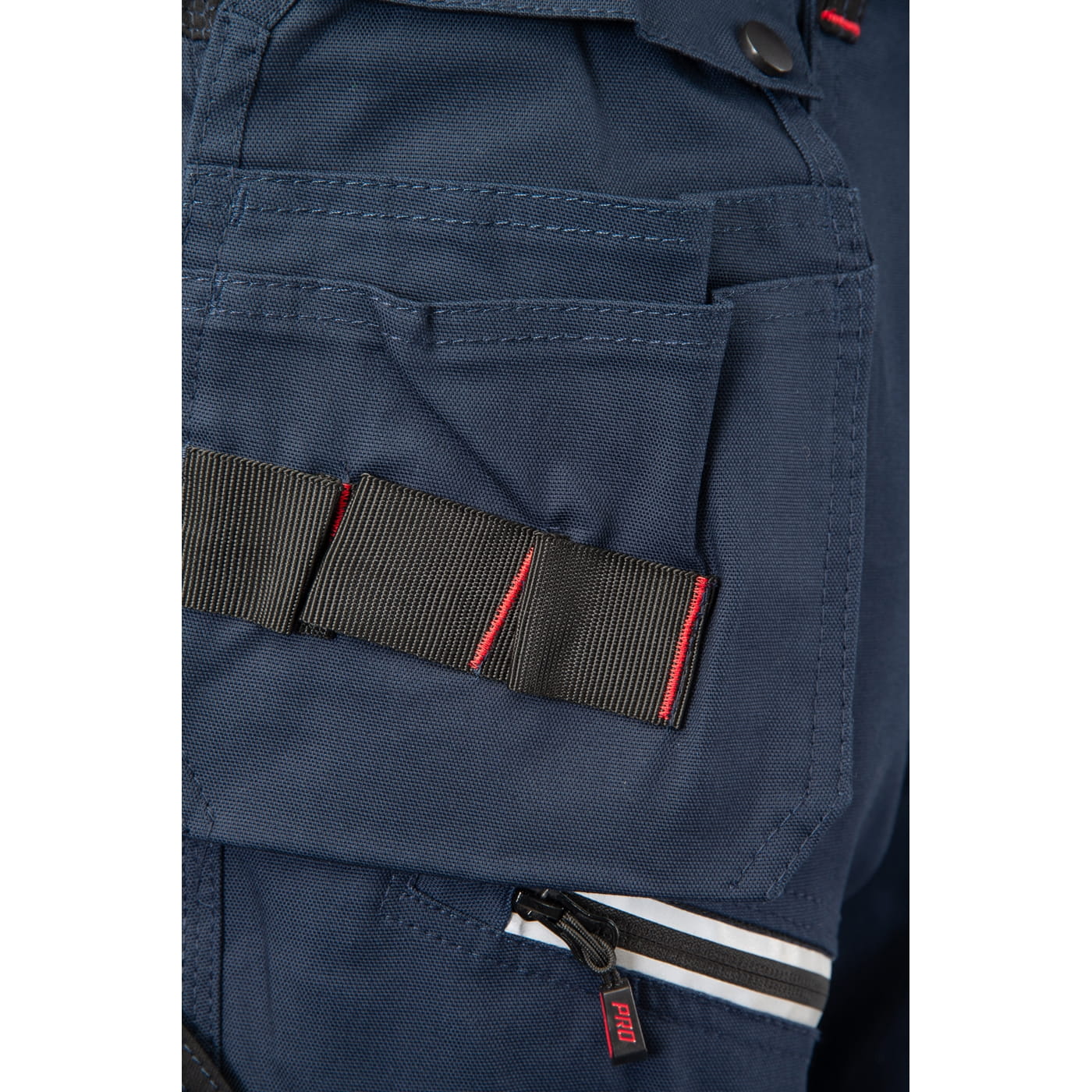 - duża ilość funkcjonalnych kieszeni: kieszeń na komórkę, kieszeń na długopisy, kieszeń na dokumenty, kieszeń na miarkę „metrówkę”, dwie wzmocnione kieszenie boczne, dwie odpinane kieszenie monterskie oraz zawieszka na identyfikator