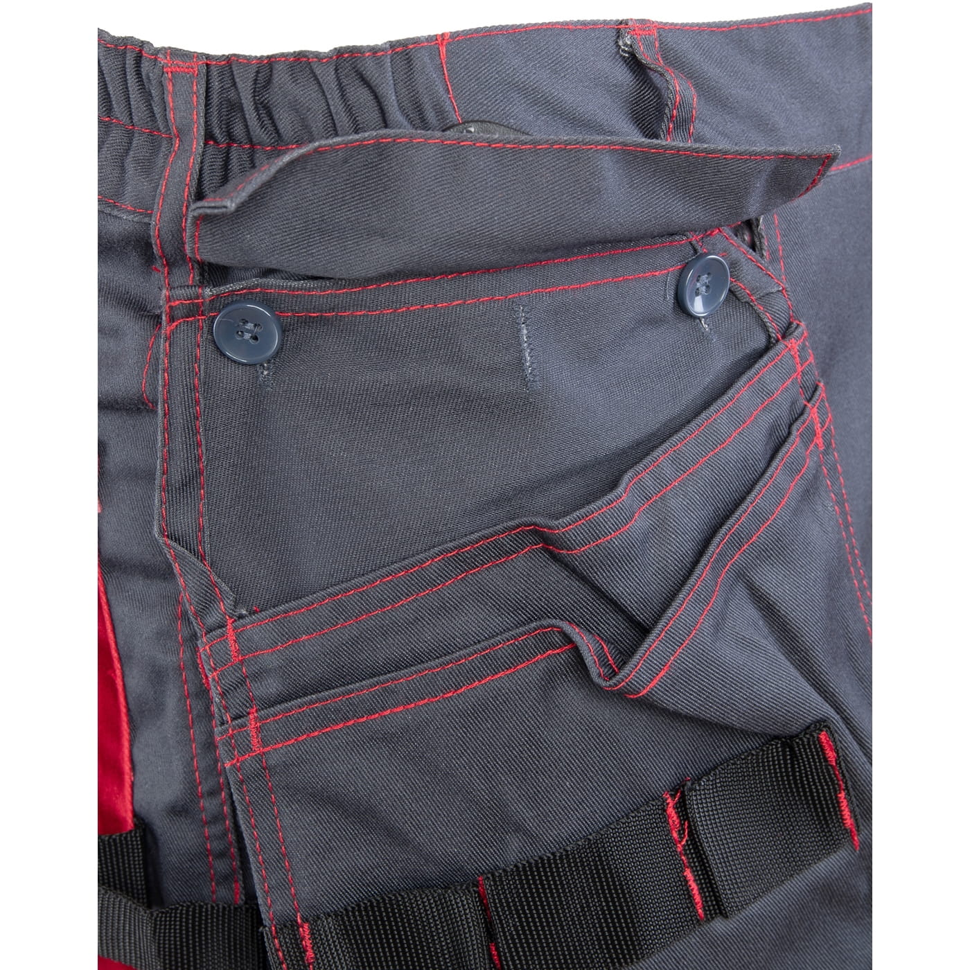 - kieszenie: dwie kieszenie w tylnej części spodni, przestrzenne kieszenie, wzmocnione kieszenie boczne, kieszeń na miarkę „metrówkę”, ergonomiczna kieszeń na nakolanniki wykonana z Cordury i dwie odpinane kieszenie monterskie