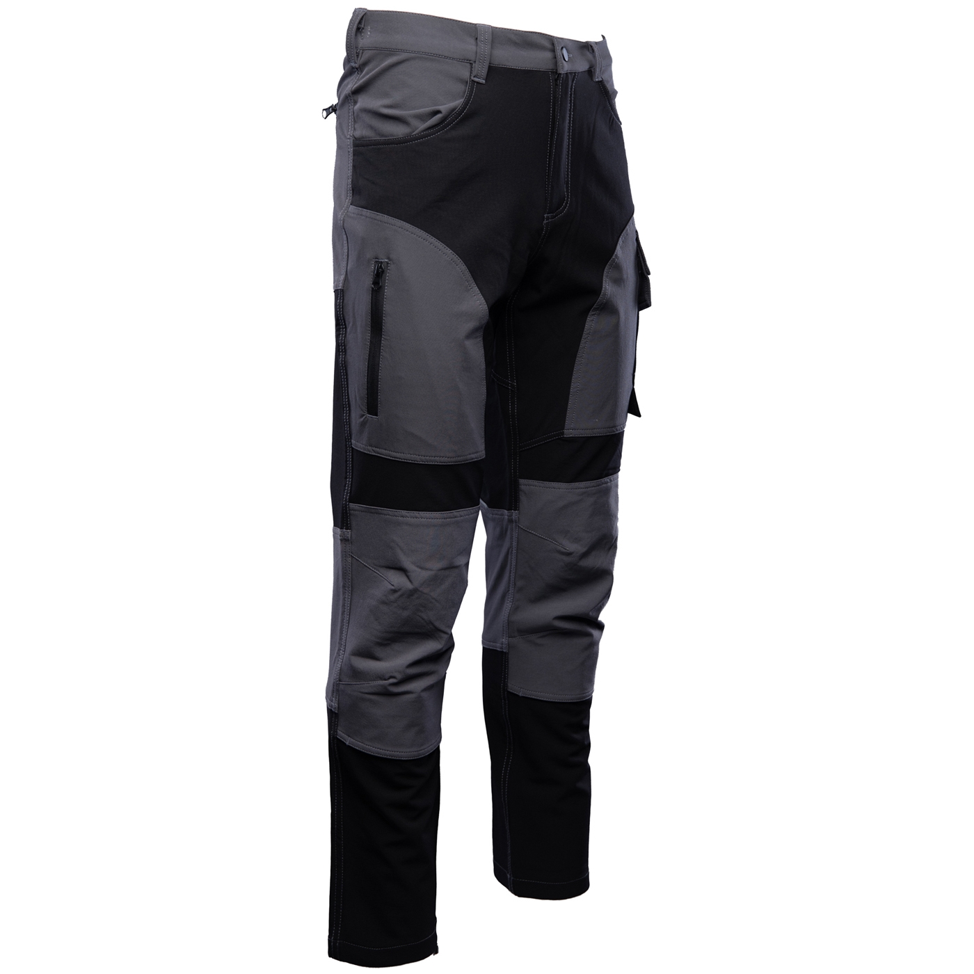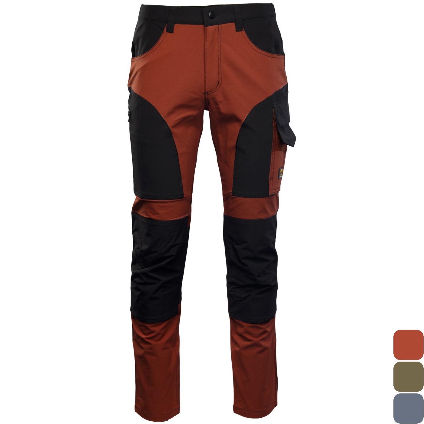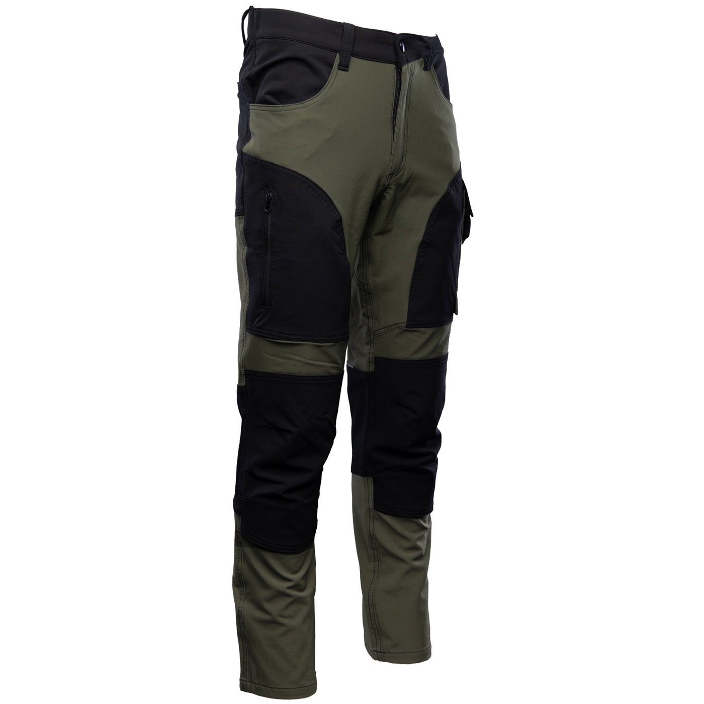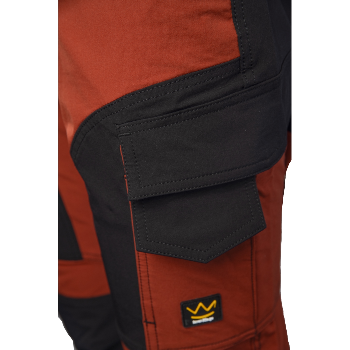 - kieszenie: kieszonka na telefon, kieszonka na dokumenty, ergonomiczna kieszeń na nakolanniki, kieszeń zapinana na zamek w tylnej części spodni i dwie wzmocnione kieszenie boczne