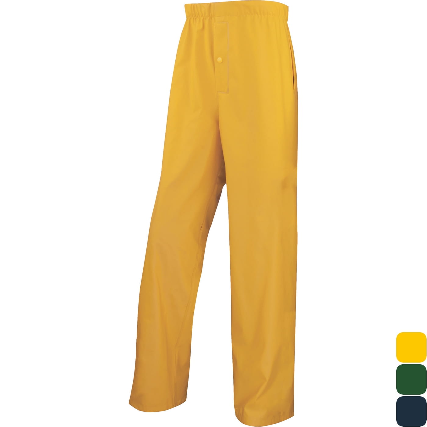 - nieprzemakalne i oddychające spodnie przeciwdeszczowe powlekane PU na wzmocnionej tkaninie