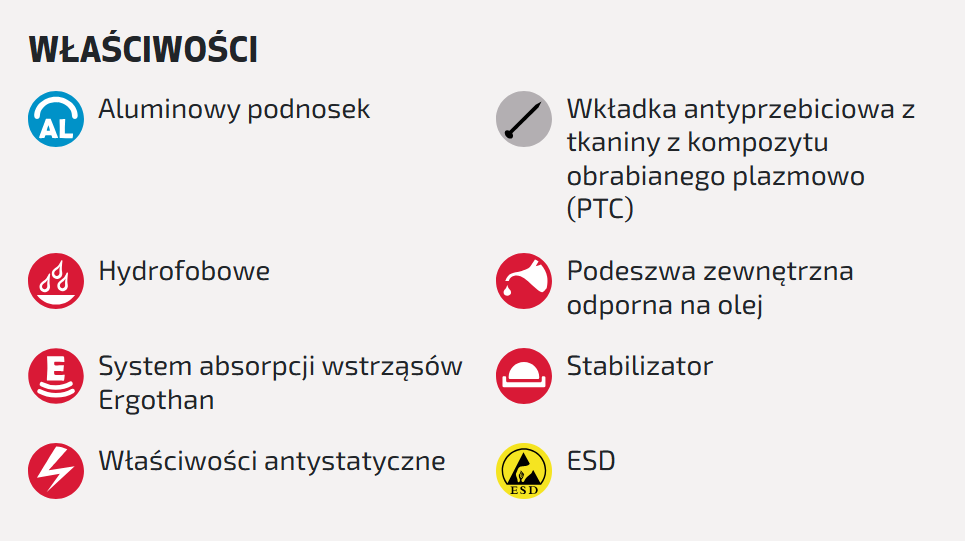 - podeszwa zewnętrzna z poliuretanu, odporna na olej, antystatyczna