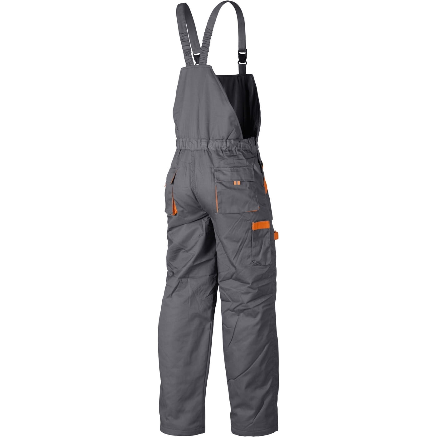 Spodnie ocieplane ogrodniczki z dużą ilością kieszeni. Możliwość regulacji w pasie. Regulacja w długości szelkami, które mają w tylnej partii dodatkowo gumkę. Dwie boczne kieszenie.