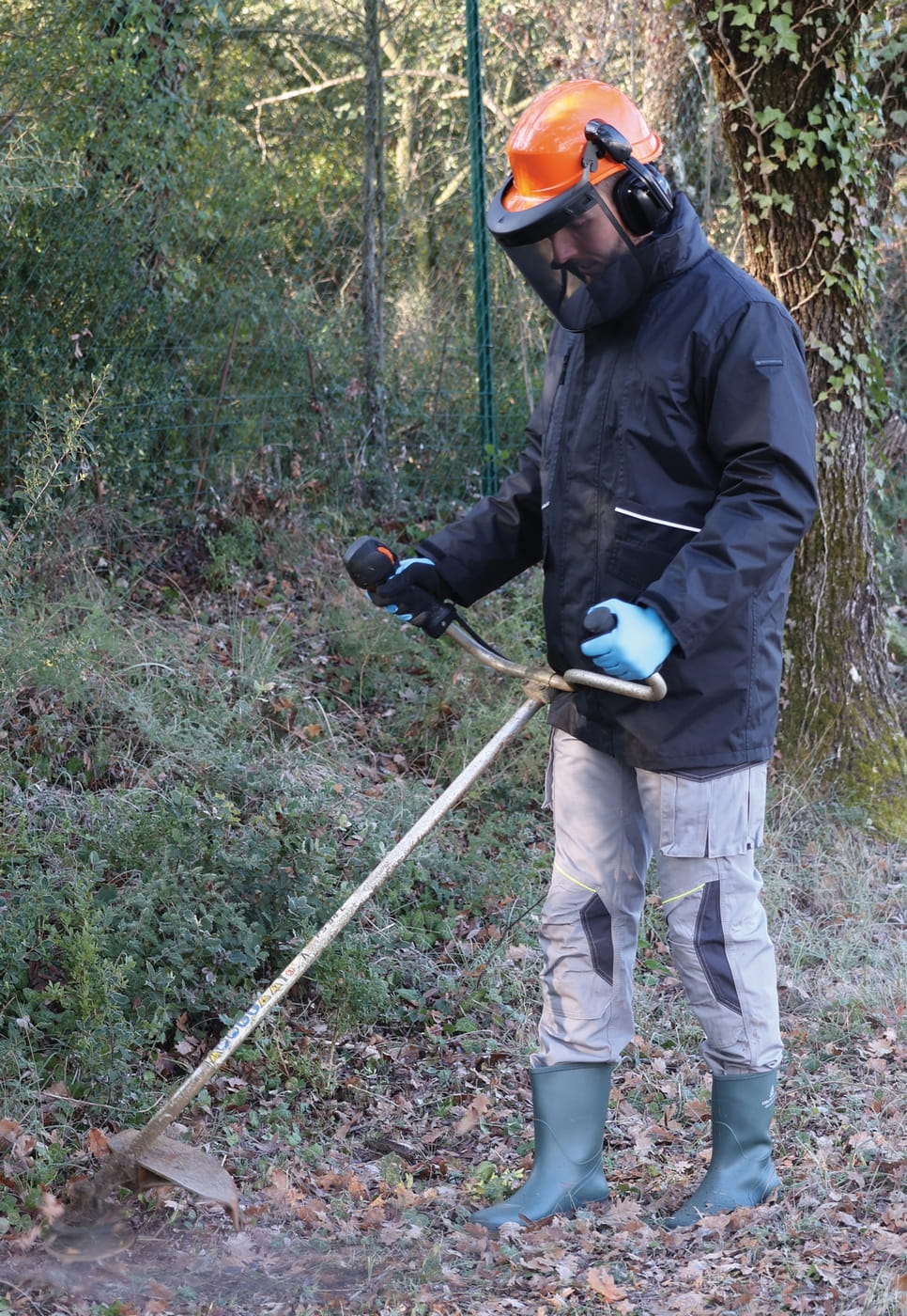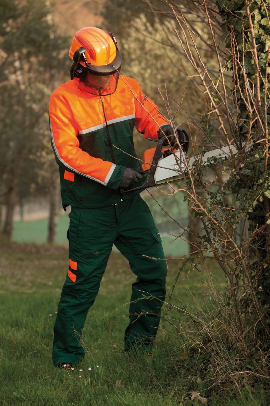 - zestaw ochronny nadaje się idealnie do usuwania zarośli i krzaków dzięki siatkowej osłonie twarzy i czaszy przeciwhałasowej